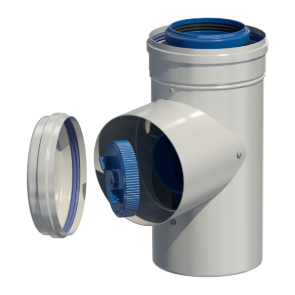 Konzentrisches Längenelement DN 80/125 mit Revision Einsatzzweck/Verwendung Konzentrische Verbindungsleitung aus eloverzinktem Außenmantel / Kunststoff Innenrohr für Feuerstätten in raumluftunabhängiger Betriebsweise. Brennstoff Öl und Gas Einsatztemperatur = 120°C Material innen: PP – Polypropylen außen: weiss pulverbeschtet RAL 9016 / eloverzinkt Wandstärke innen: 2,0mm außen: 0,5 – 0,6 mm Schweißnaht innen: Heizelementstumpfeschweißen außen: IG durchgehend/Laser Verbindung Steckverbindung Muffe / Sicke mit innenliegender Spezialdichtung im Abgasrohr. Klemmband und Dichtring am Außenmantel auf Bestellung. Zulässig für Überdruck 200 Pa Rußbrandbeständig Nein Mittlere Rauhigkeit 1,0 mm CE-Zertifikatsnummer 0036 CPD 9174 043 CE-Klassifizierung nach EN 14471 Twin-pl* DN 60 = 200 T120 – H1 – O – W – 2 – 000 – I – E – LO Twin-pl* = DN200 T120 – P1 – O – W – 2 – 000- I – E – LO * Einbau nur im Gebäude, als Verbindungsleitung zur senkrechten Abgasführung. Anwendung Die Twin-pl Verbindungsleitung dienst zur Anbindung von Kesselsystemen in raumluftunabhängiger Betriebsweise an konzentrische oder einwandige Abgasanlagen mit einer max. Abgastemperatur von 120°C. Kombination Twin-pl kann mit Twin-p / EW-pps / EW-pps-flex kombiniert werden