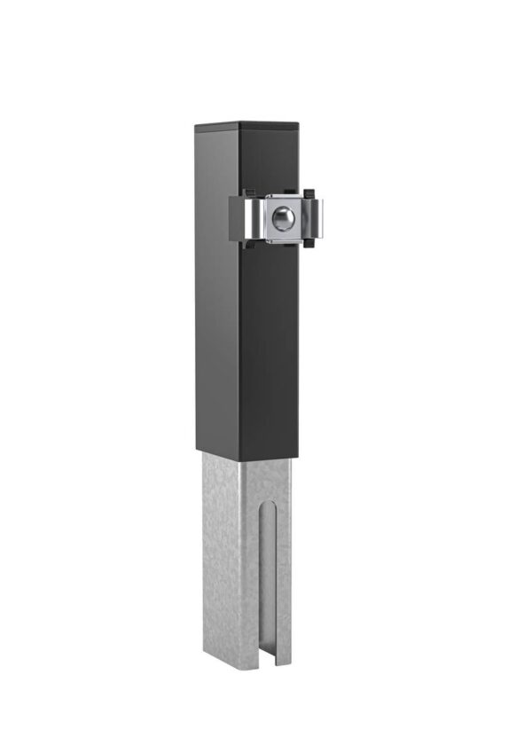 * Die Aufnahme ist passend für Materialstärke des Pfostens von 1,5 mm bis 2 mm. Um die Stabilität bei niedrigen Materialstärken zu erhöhen empfiehlt es sich seitlich zu verschrauben.