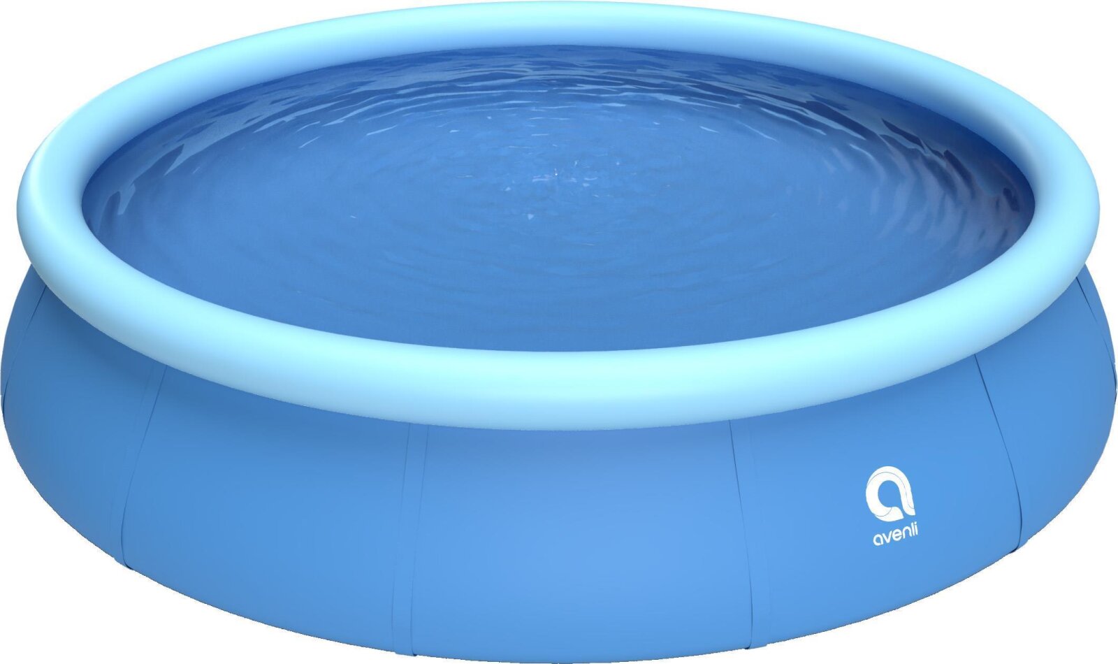 Sommer – Sonne – Avenli Pool Erlebe den Sommer in vollen Zügen mit dem Avenli Prompt Set Pool! Der Gartenpool mit einem Durchmesser von 4,20 m und einer Höhe von 84 cm ist perfekt für die ganze Familie und bietet eine willkommene Abkühlung an heißen Tagen. Der Aufbau ist kinderleicht und ohne Werkzeug möglich – einfach eine ebene Fläche auswählen, den oberen Ring aufblasen und das Becken mit Wasser befüllen. Der Boden und die Seitenwände bestehen aus strapazierfähigem, dreilagig verstärktem Material für eine lange Lebensdauer. Zwei Anschlüsse in der Poolwand ermöglichen den einfachen Anschluss einer Filteranlage und ein Bodenventil erleichtert das Ablassen des Wassers. Der Aufstellpool wird inklusive aufsteckbarem Stutzen für den Gartenschlauch geliefert. Zusätzliches Zubehör wie eine Leiter, Filterpumpe, Sandfilterpumpe, Filter, Abdeckung oder Bodenplane sind separat erhältlich und machen das Badeerlebnis perfekt. Bitte beachten Sie jedoch, dass der Aufstellpool nicht für Kinder unter 6 Jahren geeignet ist und unter Aufsicht von Erwachsenen verwendet werden sollte. Um die Sicherheit zu erhöhen, empfehlen wir die Verwendung eines Schutzzauns oder einer Sicherheitsleiter und die Einhaltung der in der Bedienungs- und Wartungsanleitung beschriebenen Sicherheitshinweise. Bitte beachten Sie auch die örtlichen Bauvorschriften für die Installation des Swimmingpools. Erleben Sie den Sommer mit dem Avenli Prompt Set Pool und genießen Sie das kühle Nass in Ihrem eigenen Garten! Lieferumfang & Produktdetails 1 Avenli Prompt Set Pool 420 x 84 cm, als Ersatzbecken geeignet, ohne Zubehör Hauptmaterial: 100 % PVC Boden: 100 % PVC Typ: Prompt Single Ventil(e): Standard inkl. Bodenablassventil Kammern: 1 Luftkammer Gestänge: nicht notwendig Montage: Aufbauanleitung inkl., 10 Min. Aufbauzeit Altersgruppe: 6+ Ø Außen: 420 cm Höhe (aufgeblasen / aufgebaut): 84 cm Fassungsvermögen: 7.820 Liter (bei 80 % Füllung) Gewicht: 16,2 kg Primärfarbe: blau Sekundärfarbe: blau Reparaturaufkleber: inklusive Achtung: Nicht geeignet für Kinder unter 6 Jahren. Benutzung unter Aufsicht von Erwachsenen Kompatibles Zubehör Leiter: 29R149 Filterpumpe: 29P414DE Sandfilterpumpe: 290729DE Filterkartusche: 29P481 ACHTUNG! Verhindern Sie bitte einen unbeaufsichtigten Zugang zum Pool! Wir empfehlen dringend, Pools mit einem Schutzzaun zu umschließen oder einen gesicherten Zugang mit einer Sicherheitsleiter zu schaffen. Bitte kontaktieren Sie das örtliche Bauamt für weitere Informationen zu den geltenden Genehmigungsauflagen. Bei Verwendung eines Schwimmbeckens oder Pools wird die Einhaltung der in der Bedienungs- und Wartungsanleitung beschriebenen Sicherheitshinweise vorausgesetzt. Um Ertrinken oder andere schwere Verletzungen zu vermeiden, achten Sie besonders auf die Möglichkeit des unerwarteten Zugangs zum Schwimmbecken von Kindern unter 5 Jahren. Sichern Sie alle Zugänge zum Pool und gewährleisten Sie unbedingt, dass Kinder während der Badezeiten unter ständiger Aufsicht eines Erwachsenen sind. Beziehen Sie bitte die örtliche Bauordnung für alle anfallenden Installationsanforderungen zu Rate. Bitte bewahren Sie die Anleitung auf!