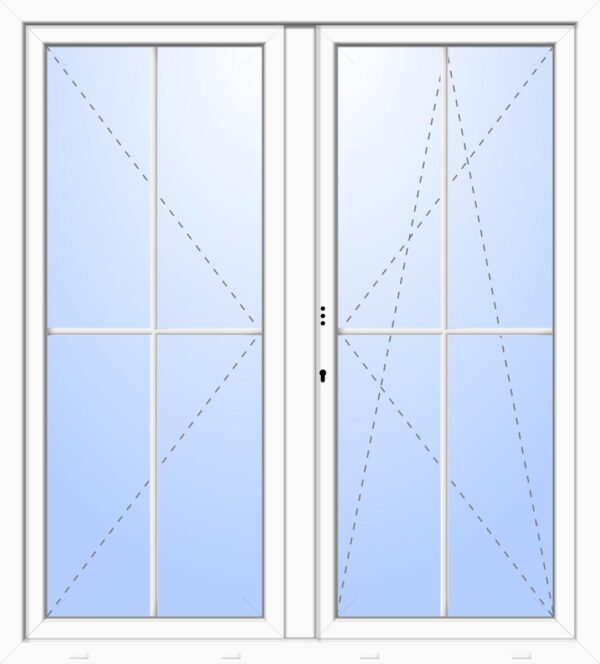 ‚Die perfekte Doppeltür für Terrasse oder Balkon – Kunststoff Balkontür „OSKAR“ 74 mm 2-fach Verglasung symm Dr / Dr-Ki Stulp 2-flügelig 4 Sprossenfelder (abschließbar). Dieses Modell kann in unserem Online-Konfigurator vielfältig zusammengestellt und bestellt werden. Das bietet Ihnen die Möglichkeit sich diese Balkontür exakt auf Ihre baulichen Anforderungen abzustimmen. Damit die Balkontür perfekt zu Ihrer Fassade passt, stehen Ihnen eine Vielzahl an Farben (Weiß, Anthrazitgrau, Silbergrau, Moosgrün, Basaltgrau, Anthrazitgrau/Eisenglimmer oder Tiefschwarz) und Holzdekoren (Golden Oak, Nussbaum oder Mahagoni) zur Verfügung. Auch von den Maßen bietet das Modell OSKAR folgende Auswahlmöglichkeiten: Breite 100 cm bis 180 cm und Höhe 180 cm bis 220 cm. Die Mehrfach Pilzkopfverriegelung sorgt für Ihre Sicherheit und die Verglasung für Energieeffizienz mit einem Wärmedämmwert von 1,30 W/m²K. Die Stulp Ausführung sorgt für einen freien Durchgang ohne Mittelsteg. Dank der innenliegenden Sprossen lässt sich die PVC Balkontür „OSKAR“ 74mm symm Dr / Dr-Ki Pfosten 2-flügelig 2-fach Glas 2 Sprossen (abschließbar) ganz einfach reinigen. Überzeugen Sie sich selbst!‘