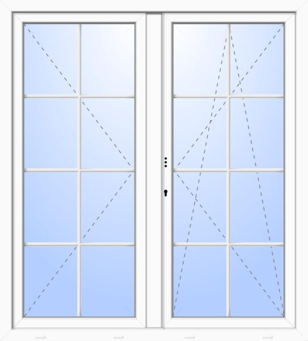 ‚Die perfekte Doppeltür für Terrasse oder Balkon – Kunststoff Balkontür „OSKAR“ 74 mm 2-fach Verglasung symm Dr / Dr-Ki Stulp 2-flügelig 8 Sprossenfelder (abschließbar). Dieses Modell kann in unserem Online-Konfigurator vielfältig zusammengestellt und bestellt werden. Das bietet Ihnen die Möglichkeit sich diese Balkontür exakt auf Ihre baulichen Anforderungen abzustimmen. Damit die Balkontür perfekt zu Ihrer Fassade passt, stehen Ihnen eine Vielzahl an Farben (Weiß, Anthrazitgrau, Silbergrau, Moosgrün, Basaltgrau, Anthrazitgrau/Eisenglimmer oder Tiefschwarz) und Holzdekoren (Golden Oak, Nussbaum oder Mahagoni) zur Verfügung. Auch von den Maßen bietet das Modell OSKAR folgende Auswahlmöglichkeiten: Breite 100 cm bis 180 cm und Höhe 180 cm bis 220 cm. Die Mehrfach Pilzkopfverriegelung sorgt für Ihre Sicherheit und die Verglasung für Energieeffizienz mit einem Wärmedämmwert von 1,30 W/m²K. Die Stulp Ausführung sorgt für einen freien Durchgang ohne Mittelsteg. Dank der innenliegenden Sprossen lässt sich die PVC Balkontür „OSKAR“ 74mm symm Dr / Dr-Ki Pfosten 2-flügelig 2-fach Glas 4 Sprossen (abschließbar) ganz einfach reinigen. Überzeugen Sie sich selbst!‘