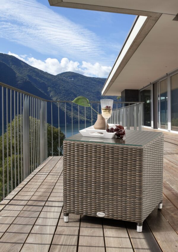 Geflechttisch mit auflegbarer Glasplatte