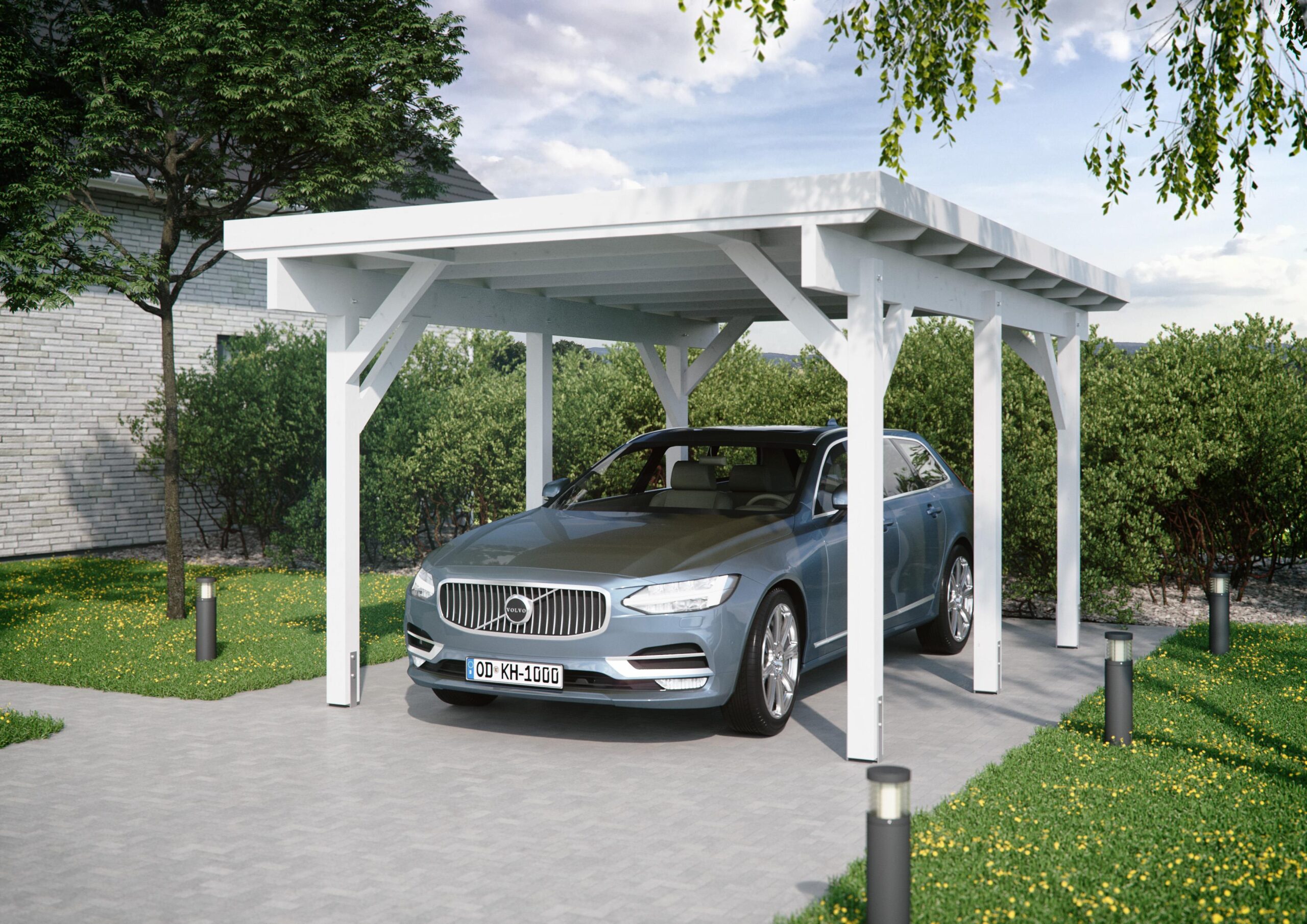 Carport Chicago I 3,44×5,04 m: Dein stilvoller Schutz für Auto und mehrMach dein Zuhause ein Stück funktionaler und eleganter mit dem Carport Chicago I 3,44×5,04 m. Dieser Einzelcarport beeindruckt nicht nur durch seine elegante Optik in Weiß oder Anthrazit, sondern bietet auch reichlich Platz, um zusätzliche Gegenstände sicher zu verstauen. Ob Gartengeräte, Fahrräder oder sperrige Campingausrüstungen – alles findet seinen Platz.Material und Verarbeitung: Nur das Beste für dichDer Carport besticht durch seine robuste Bauweise. Er ist aus hochwertigem Leimholz gefertigt, das für seine Langlebigkeit bekannt ist. Die Pfostenstärke von 12 cm gewährleistet eine hervorragende Stabilität, während das Flachdach eine schicke und moderne Erscheinung verleiht. Dank der Verwendung von finnischem Fichte-Lamellen-Holz bleibt die natürliche Schönheit des Holzes erhalten, und es fügt sich nahtlos in jede Umgebung ein.Besondere Features für deine Anforderungen Schneelast von 250 kg/m²: Ideal für alle Witterungsbedingungen, selbst bei starkem Schneefall bleibt dein Auto geschützt. Vielseitige Nutzung: Genug Platz, um einen Geräteraum zu integrieren, perfekt für Schrebergärten oder als stilvoller Stauraum. Stahlbedachung: Die Dachprofile sind feuerverzinkt, bieten zusätzlichen Schutz vor Witterungseinflüssen und verhindern Kondenswasserbildung. Warum der Carport Chicago I dein neuer Favorit wirdDieses Carport vereint Großzügigkeit und Eleganz in einem. Die moderne, schlichte Ästhetik passt perfekt in jeden Garten oder Wohnort. Für Heimwerker und Gartenbesitzer offenbart es sich als vielseitiges Schmuckstück, das nicht nur funktional ist, sondern auch das äußere Erscheinungsbild deines Hauses aufwertet.Einzelcarport oder mehr: Deine WahlDer großzügige Einzelcarport bietet mehr als nur Platz für dein Fahrzeug. Er lässt Raum für Kreativität: Erlebe, wie Gegenstände, die bisher nur im Weg waren, verschwinden und Platz machen für eine organische Ordnung.Camper und Wohnmobilbesitzer werden ebenfalls vom Carport Chicago I begeistert sein. Es ist nicht nur als Auto-Unterstand geeignet, sondern bietet auch eine praktische Lagerfläche für Campingzubehör.Einfache Montage für den HeimwerkerDie Montage des Carport Chicago I ist ein Kinderspiel, auch für den geübten Heimwerker. Durch die klare Anleitung und den präzise gefertigten Bausatz kannst du dein neues Carport schnell und effizient aufstellen.Perfekt für alle WetterbedingungenMit seiner starken Schneelast von 250 kg/m² und der stabilen Stahlbedachung ist der Carport für jede Wetterlage gewappnet. Regenschauer, Schneefall oder Sonne – dein Fahrzeug bleibt immer geschützt. Die spezielle Antikondens-Beschichtung sorgt dafür, dass keine Feuchtigkeit Schäden verursacht.Eigenschaften auf einen Blick Breite: 3,44 m Tiefe: 5,04 m Pfostenstärke: 12 cm Dachform: Flachdach Holzart: FichteSetze neue Maßstäbe mit deinem CarportDurch die gelungene Kombination aus Funktionalität und Design setzt der Carport Chicago I neue Maßstäbe für moderne Abstellmöglichkeiten. Die schlichte Eleganz ist ideal für Galabauer, die ihrem Projekt das gewisse Etwas verleihen möchten, sowie für Endkunden, die Wert auf Qualität und Stil legen.Fazit: Schütze und gestalte deinen Raum sinnvollMit dem Carport Chicago I holst du dir einen funktionalen und ästhetisch ansprechenden Schutz nach Hause. Bereite deinem Auto und deinen Gartengeräten einen stilvollen Unterschlupf und bringe Ordnung in deinen Außenbereich. Überzeuge dich selbst – der Carport wartet darauf, deinen Alltag zu erleichtern!Nicht warten, sondern machen! Hol dir den Carport Chicago I und vereine Eleganz und Funktionalität bei dir zu Hause.