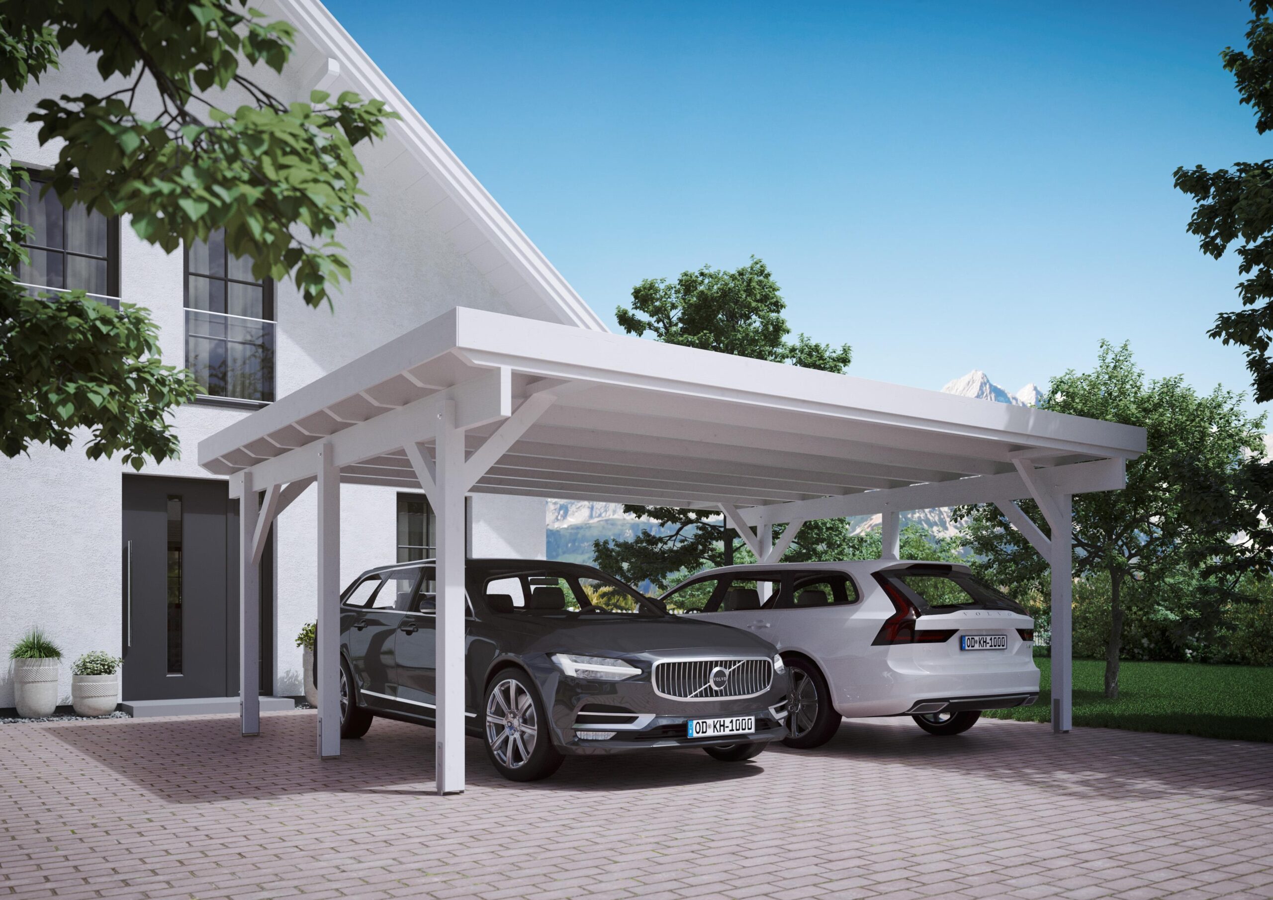 Der Carport ist farbvorbehandelt wahlweise in weiß oder anthrazit. Es zeigt sich in schickem und schlicht elegantem Stil. Genug Platz um noch ein Geräteraum zu integrieren für alle Gartengeräte oder Fahrräder. Ihr Garten ist somit schnell befreit von allen Dingen, die nur so herumstehen. Das Design zeigt, dass Großzügigkeit vereinbar ist mit Eleganz. Die Qualität ist geprägt vom hartem finnischem Fichte-Lamellen-Holz. Spezial-Antikkondens-Dachprofile, feuerverzinkt, schützen der Carport zusätzlich. Die Schneelast ist mit 250 kg/m² besonders hoch.