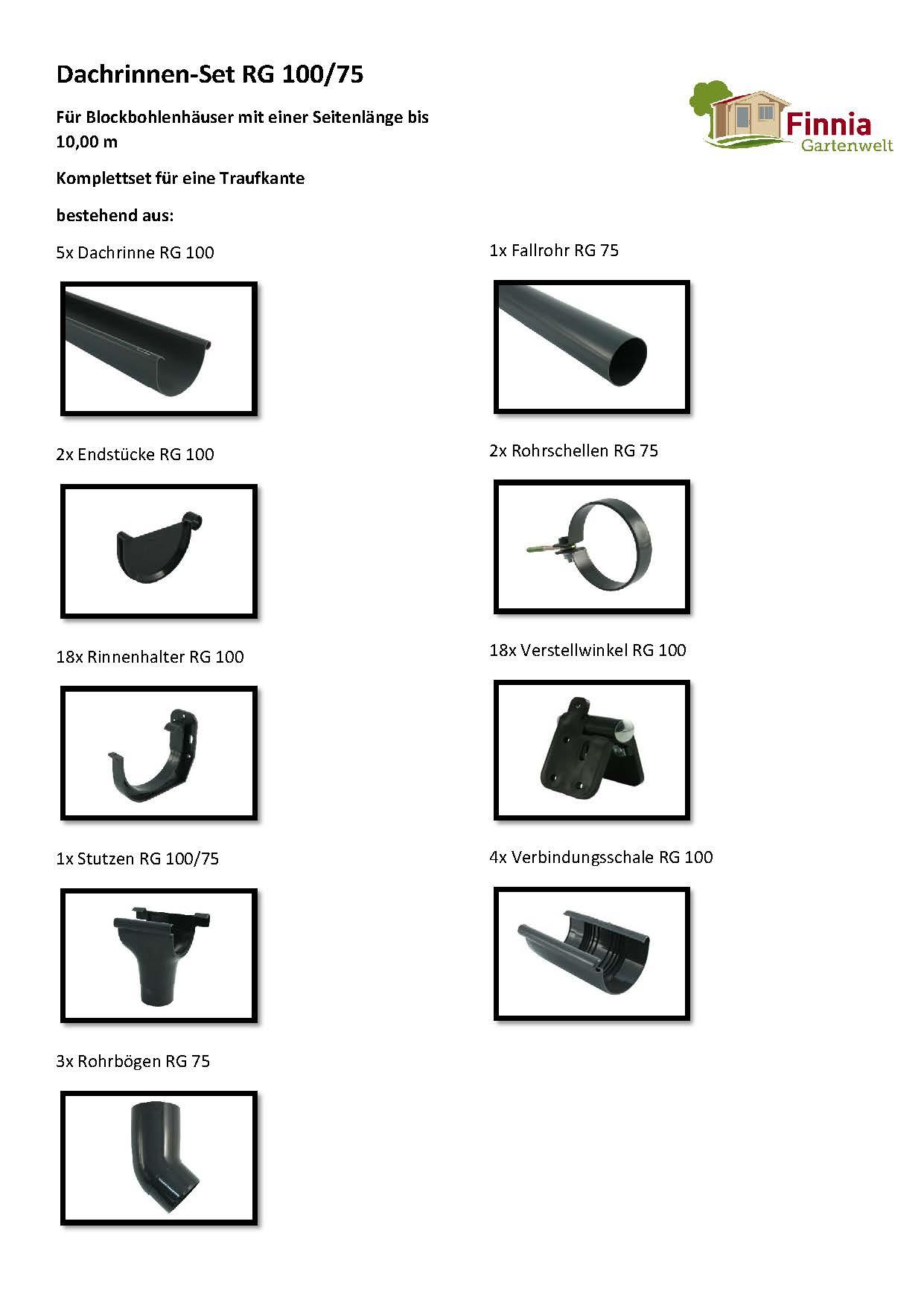 Dachrinnenset Kunststoff Anthrazit – 10?m KomplettlösungIhr Rundum-sorglos-Paket:Dieses vollständig zusammengestellte Dachrinnenset in elegantem Anthrazit bietet Ihnen alles, was Sie für eine effektive Dachentwässerung benötigen:• Länge: 10?Meter passgenau – ideal für größere Gartenhäuser, Carports oder Terrassenüberdachungen.• Hochwertiges PVC: Witterungs- und UV-beständig, robust und leicht zu reinigen.• Grundkomponenten: o Dachrinne und Fallrohr (bewährter Ø 100/75?mm) o Rinnenhalter und Verstellwinkel für sichere Befestigung o Endstücke, Rinnenverbinder und Rinnenablauf – für saubere Übergänge o Fallrohrbogen, Schellen – für flexiblen EinbauVorteile auf einen Blick:• Komplett-Set-Lieferung – Sie erhalten alle benötigten Komponenten.• Einfache Montage – präzise gefertigte Teile ermöglichen einen zügigen Selbstaufbau.• Langlebig & wartungsarm – PVC trotzt Frost und Sonneneinstrahlung und ist resistent gegen Korrosion – für jahrelangen, sorgenfreien Einsatz.Perfekt geeignet für:• Gartenhäuser (Satteldach, Pultdach)• Carports und Terrassendächer• Neubauten oder Nachrüstungen________________________________________Fazit:Mit dem 10?m Dachrinnenset in Anthrazit von Finnia Gartenwelt erhalten Sie ein hochwertiges, vollständiges und langlebiges Entwässerungssystem – ideal für Heimwerker, die sowohl Wert auf Funktion als auch auf Design legen.