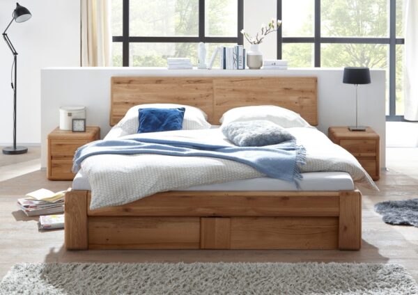 Doppelbett 180×200 mit Bettkasten Lattenrost Wildeiche mit Holzkopfteil Verona