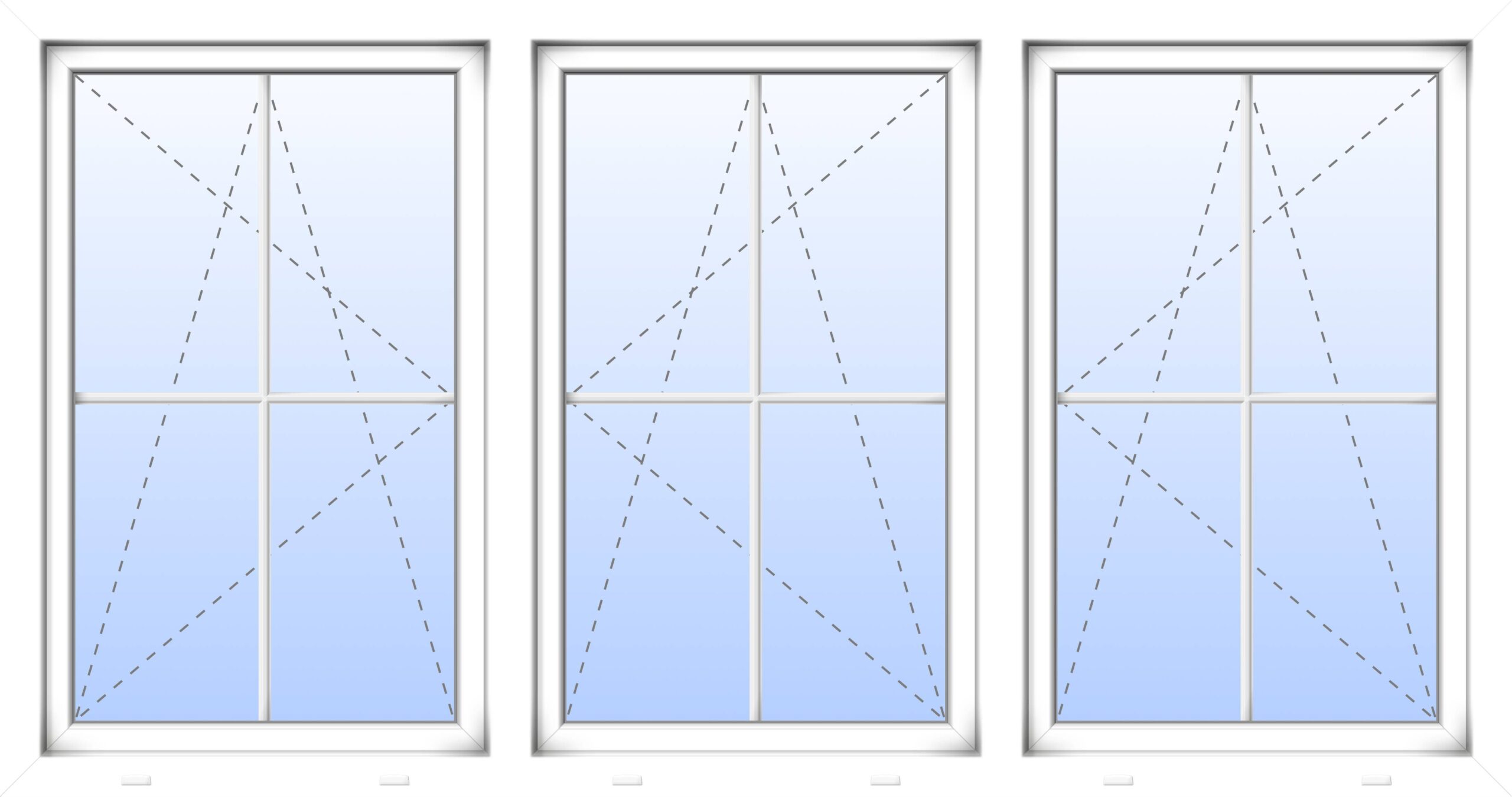‚Fenster 3-flügelig „MARTIN“ GEALAN Profil PVC 2-fach verglast 4 Sprossenfelder‘