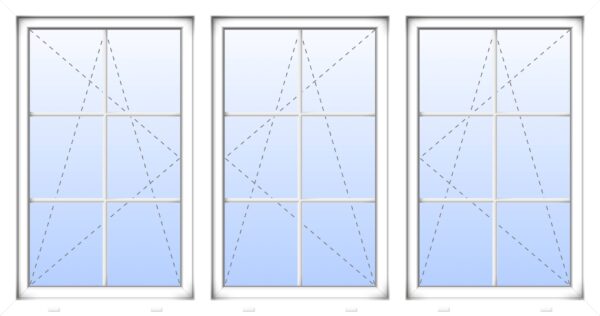 ‚Fenster 3-flügelig „MARTIN“ GEALAN Profil PVC 2-fach verglast 6 Sprossenfelder‘