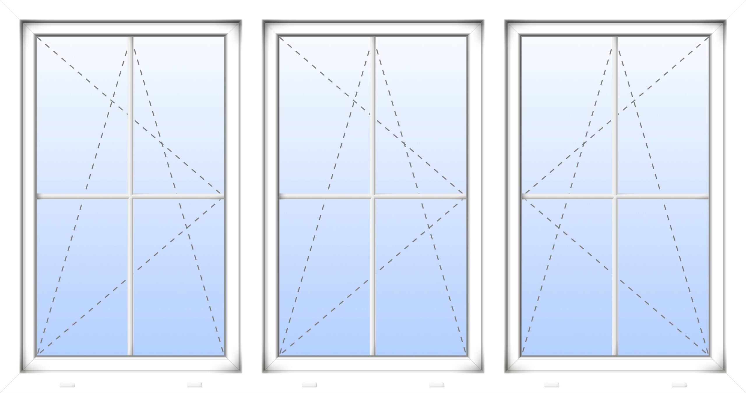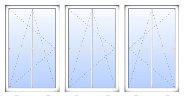 ‚Fenster 3-flügelig „VALENTIN“ GEALAN Profil PVC 3-fach verglast 4 Sprossenfelder‘