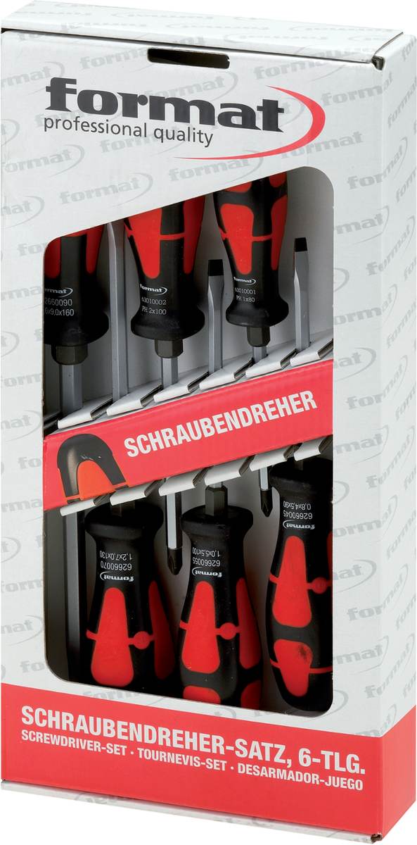 Format Schraubendreher-Satz, 6-teilig, Schlitz, Kreuzschlitz, ergonomisch, hochlegierter Sonderstahl