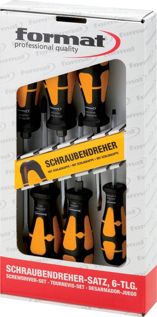 Format Schraubendreher-Satz mit Schlagkappe, 6-teilig, Schlitz, Kreuzschlitz, Sonderstahl, Meißel