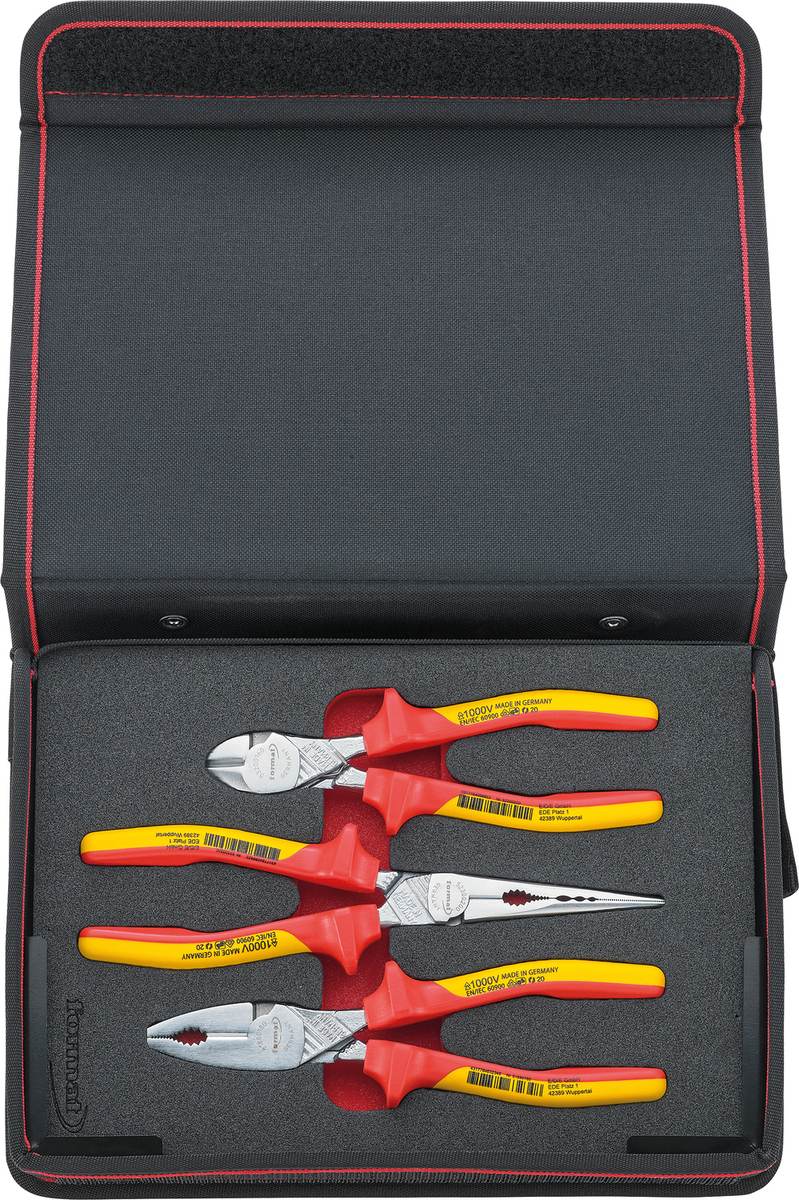 Format VDE-Zangen-Satz, 3-teilig, 2-K-Griff, Seitenschneider, Kombizange, Storchschnabelzange