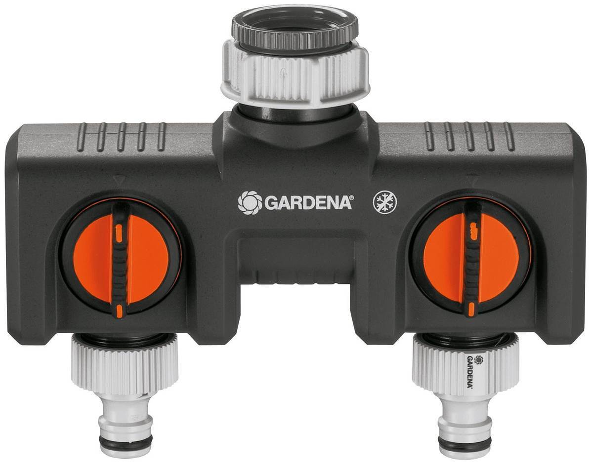 Gardena 2-Wege-Verteiler, Anschluss von 2 Geräten am Wasserhahn, Wasserverteiler