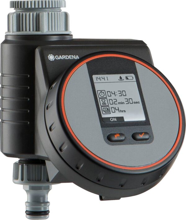 Mit der GARDENA Bewässerungssteuerung Flex lässt sich die Bewässerung auf Balkonen, Dachterrassen oder Terrassen flexibel und einfach automatisch steuern. Die Steuerung ist batteriebetrieben, wird direkt an den Wasserhahn angeschlossen und lässt sich leicht über ein innovatives, außenliegendes Drehelement zur Auswahl der Daten und eine Bestätigungstaste bedienen. Ein gut lesbares LC-Display zeigt alle Einstellungen auf einen Blick an. Die wetterbeständige Bedieneinheit ist abnehmbar. Bei der Bewässerungssteuerung Flex sind im Sekundentakt einstellbare Bewässerungszeiträume möglich, so dass sie ideal für die Verwendung mit einer Tropfbewässerung geeignet ist. Der Einsatz in Kombination mit einem GARDENA Bodenfeuchtesensor ist möglich.