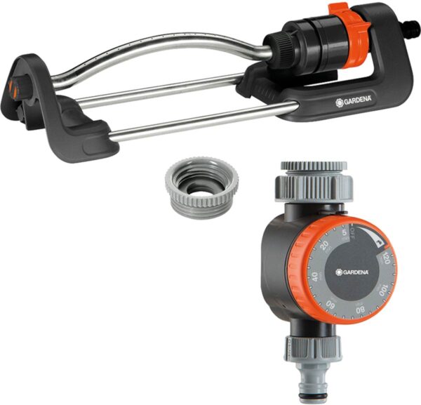 Gardena Viereckregner-Set Aqua S mit Bewässerungsuhr, automatische Rasenbewässerung mit Sprinkler