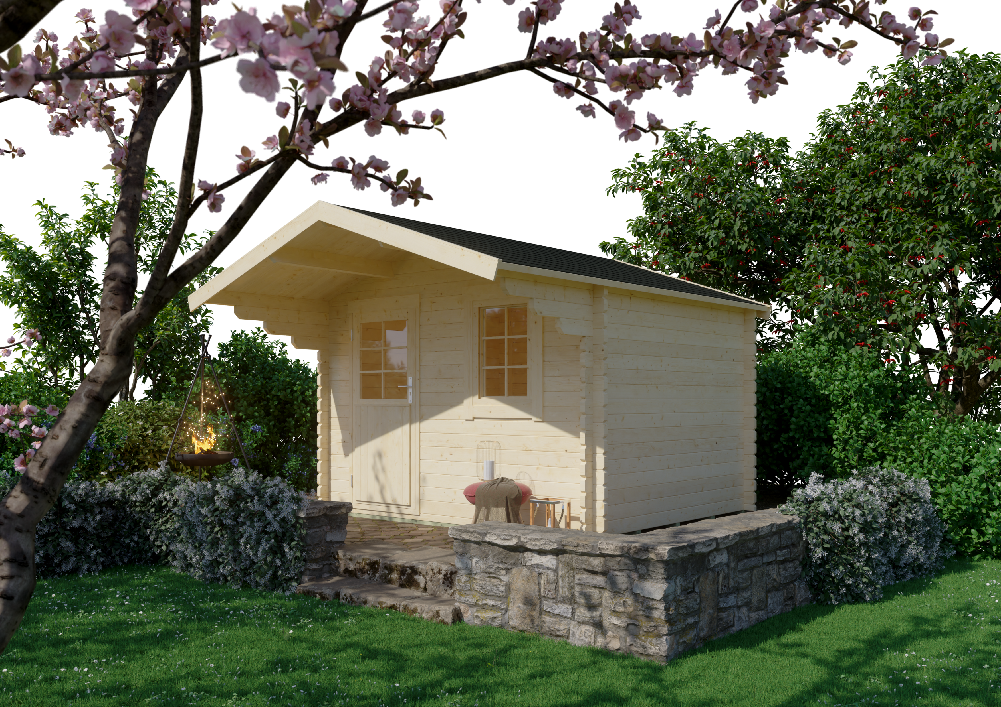 Das Gartenhaus Aldra II 3,00 x 2,50 m ist eine kompakte und dennoch robuste Lösung für kleine Gärten. Mit einer Grundfläche von 7,5 m² bietet es ausreichend Platz für Stauraum oder kreative Rückzugsorte. Die 44 mm starken Blockbohlen aus nordischem Fichtenholz gewährleisten eine hohe Stabilität und Langlebigkeit, unterstützt durch die Doppelnut- und Doppelfeder-Verbindung. Das Satteldach besteht aus 16 mm starken Nut- und Federbrettern und bietet mit 13,8 m² ausreichend Schutz vor Witterungseinflüssen. Die Verarbeitung der Wände erfolgt in traditioneller Stapelbauweise, sodass die massiven Holzbohlen flexibel auf wechselnde Witterungsbedingungen reagieren können.Dank der Verwendung von Echtglas für die Tür- und Fensterelemente, wirkt das Haus besonders hochwertig und lichtdurchflutet. Die Tür ist robust und mit einem praktischen Schloss ausgestattet. Ein weiteres Plus ist der im Lieferumfang enthaltene 16 mm starke Fußboden, der durch kesseldruckimprägnierte Fundamenthölzer geschützt wird und somit für lange Haltbarkeit sorgt.Mit einer Firsthöhe von 2,51 m und einer Seitenwandhöhe von 1,96 m bietet das Gartenhaus ausreichend Höhe, um den Raum flexibel zu nutzen. Die unbehandelten Holzoberflächen ermöglichen eine individuelle Gestaltung, sodass das Haus sich perfekt in jeden Garten integrieren lässt. Alle Komponenten werden passgenau geliefert und ermöglichen einen schnellen und einfachen Aufbau.