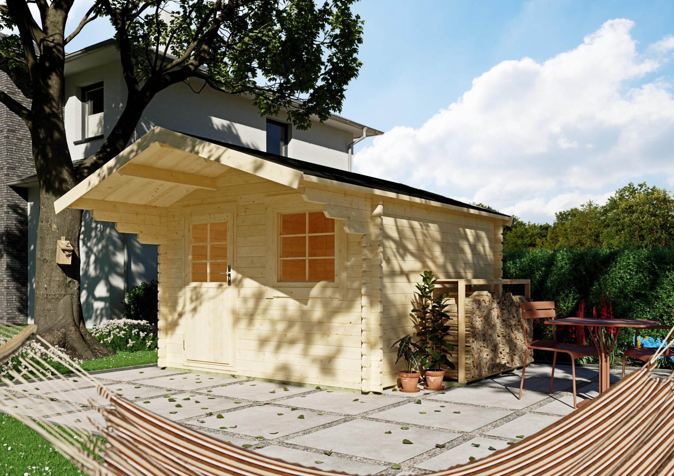 Das Gartenhaus Bloomfield 3,00 x 3,00 m ist eine exzellente Wahl für alle, die Wert auf Stabilität und Qualität legen. Mit einer großzügigen Grundfläche von 9 m² eignet es sich ideal als Gartengerätehaus, Hobbyraum oder Rückzugsort. Die Wände des Gartenhauses bestehen aus 44 mm starken Blockbohlen aus hochwertigem nordischem Fichtenholz. Diese Bohlen sind mit einer Doppelnut und Doppelfeder versehen, was für eine besonders stabile und langlebige Konstruktion sorgt. Diese Technik verhindert das Eindringen von Feuchtigkeit und gewährleistet eine hohe Winddichtigkeit. Gerade für Regionen mit wechselhaftem Wetter ist diese Bauweise ideal, da sie den natürlichen Holzbewegungen durch Nässe und Trockenheit gerecht wird.Das Dach des Gartenhauses besteht aus 16 mm starken Nut- und Federbrettern. Diese bieten eine solide Abdeckung und verleihen dem Haus einen traditionellen Charme. Die Dachfläche beträgt 15,1 m², und das Satteldach mit einer Dachneigung von 19° bietet nicht nur eine ansprechende Optik, sondern auch ausreichenden Schutz vor Regen und Schnee.Ein weiteres Highlight des Gartenhauses ist die hochwertige Tür mit Echtverglasung, die nicht nur lichtdurchflutet wirkt, sondern auch eine langlebige und wetterfeste Lösung darstellt. Auch die Fenster sind mit Echtglas ausgestattet, was dem Haus einen edlen und zugleich funktionalen Charakter verleiht. Der Fußboden besteht aus 16 mm dicken Dielen, die ebenfalls eine robuste und stabile Basis bieten.Alle Bauteile des Gartenhauses werden unbehandelt geliefert, sodass Sie die Möglichkeit haben, das Holz individuell nach Ihren Vorstellungen zu streichen oder zu lasieren. Die verwendeten Fundamenthölzer sind kesseldruckimprägniert, was zusätzlichen Schutz vor Feuchtigkeit und Schimmel bietet und die Lebensdauer des Hauses verlängert.Mit einer Firsthöhe von 2,51 m und einer Seitenwandhöhe von 1,96 m bietet das Gartenhaus genügend Raum für verschiedenste Nutzungsmöglichkeiten. Das praktische Stecksystem ermöglicht einen schnellen Aufbau, da die Bohlen einfach zusammengesteckt werden. Somit können die Holzelemente auf natürliche Weise „arbeiten“, ohne dass zusätzliche Befestigungen erforderlich sind.
