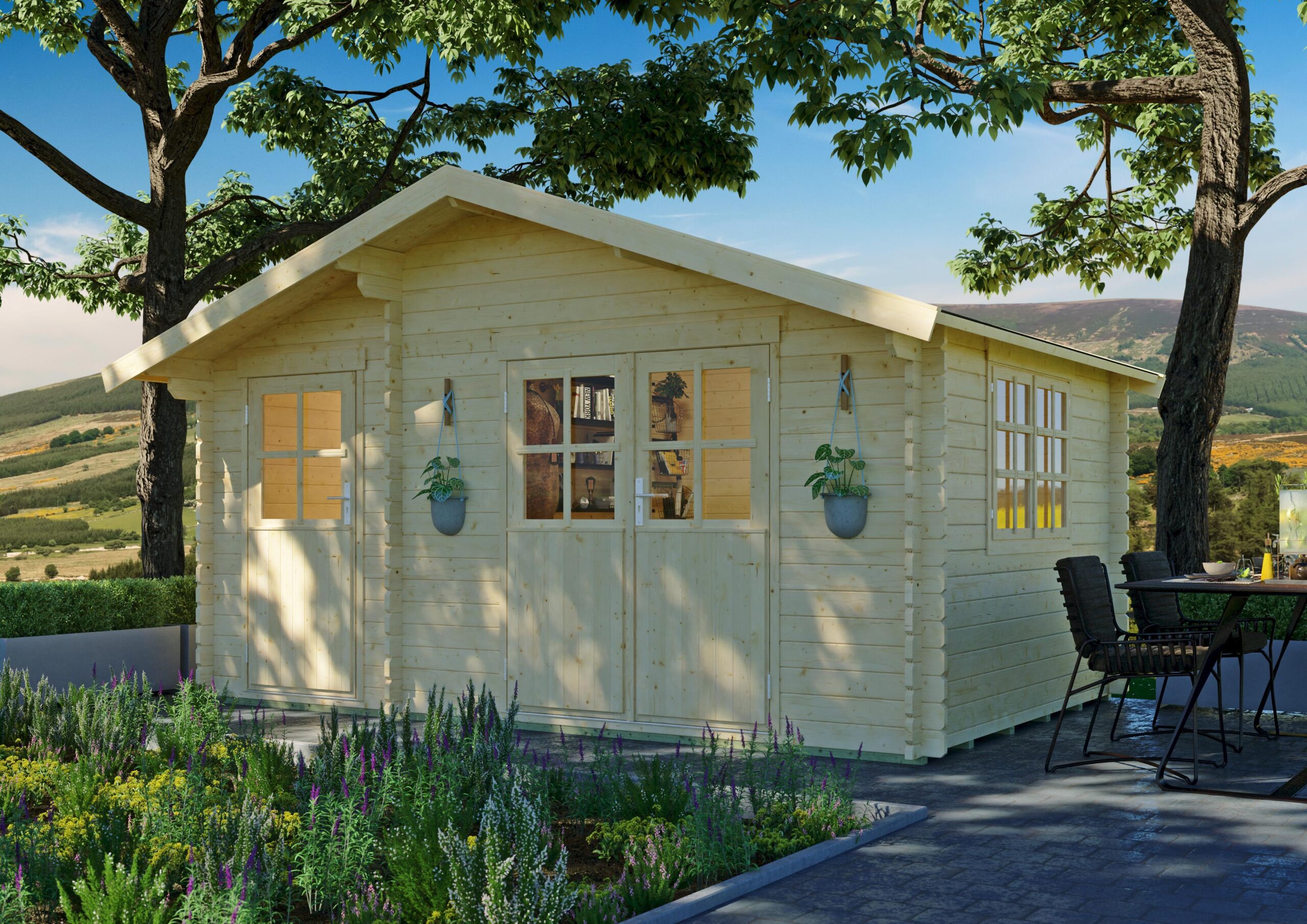 28mm und 34mm starke Blockbohlen: unsere klassischen Blockbohlenhäuser Die klassischen Wandstärken für Blockbohlenhäuser in traditioneller Stapelbauweise.In diesen Stärken geht fast alles an Größe und Ausführung.Dieses traditionelle, stabile Konstruktionsprinzip schafft echte Werte und ist dauerhaft und verlässlich. Auch hier kommt‘s auf’s Holz an: und das ist für unsere Häuser ausschließlich das langsam gewachsene und daher hochfeste nordische Nadelholz.Unsere Blockbohlen sind für den Wandaufbau CNC bearbeitet = exakte Passung.16mm starke Nut-und-Federbretter für das Massivholzdach mit Massivholzpfetten gehören dazu Technisch getrocknet und selbstverständlich chemisch unbehandelt, sind alle Komponenten ohne Nacharbeiten passgenau für den problemlosen Aufbau bearbeitet. Zu unseren Bausätzen gehören auch immer Fundamenthölzer, diese sind selbstverständlich mit Holzschutz imprägniert.Tür- und Fensterelemente größtenteils vorgefertigt und überwiegend echtverglast.Gute Beschläge mit praxisgerechten Drückergarnituren und stabile Schlösser sowie komplettes Montagematerial sind bei unseren Häusern ebenfalls Standard. Die klassischen ‘28er und 34er‘ sind also immer erste Wahl.Hier werden die Wände in ’Stapelbauweise’ erstellt, dass heißt einfach zusammengesteckt – ohne jegliche weiteren Verbindungen. So können die Massivholzbohlen durch die Witterungsperioden mit ständig wechselnder Nässe, Trockenheit und Temperaturen frei ‚arbeiten‘.