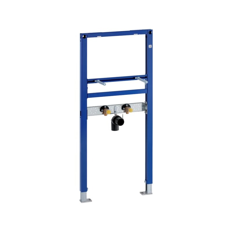 Geberit Duofix Montageelement für Waschtisch, H: 112 cm Verwendungszwecke Für Trockenbau Zum Einbau in teil- oder raumhohe Vorwandinstallationen Zum Einbau in raumhohe Installationswände Zum Einbau in teil- oder raumhohe Geberit Duofix Systemwände Zur Montage von Waschtischen Für Standarmaturen Für Fußbodenaufbauten 0-20 cm Eigenschaften Selbsttragender pulverbeschichteter Rahmen Rahmen mit Bohrlöchern, Durchmesser 9 mm für Befestigung im Holzständerbau Fußstützen verzinkt, verstellbar: 0-20 cm Fußstützen mit Rutschhemmung Fußplatten drehbar Fußplattentiefe passend zum Einbau in U-Profile UW 50 und UW 75 und Geberit Duofix Systemschienen Befestigungsabstand Waschtisch: 5-38 cm Befestigung für Anschlussbogen schallgedämmt und höhenverstellbar Traverse Armatur höhen- und tiefenverstellbar Bitte separat bestellen: Geberit Duofix Set Wandanker für Einzelmontage