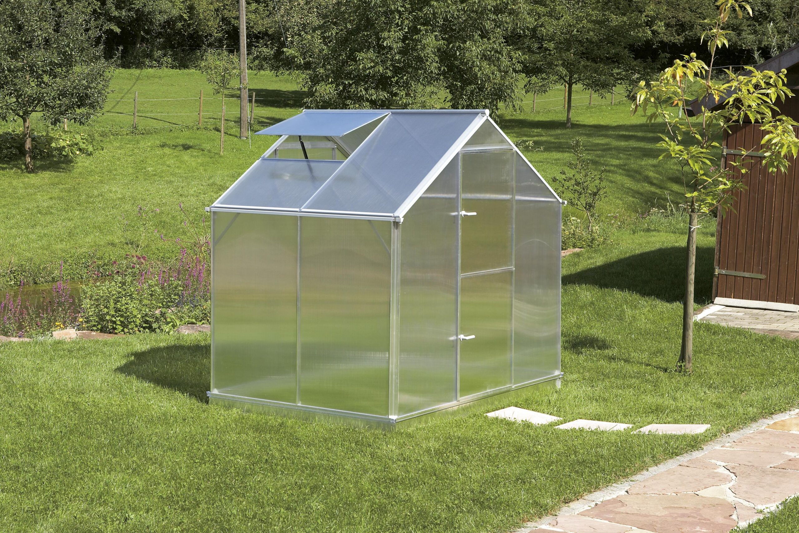 Lieben Sie Ihren Garten? Möchten Sie sich unabhängiger machen vom Lauf der Jahreszeiten und von so mancher Wetterkapriole? Dann entscheiden Sie für ein Alu Gewächshaus. Mit einem Gewächshaus können sie die Gartensaison um viele Wochen verlängern. Und das Beste: Ein Alu Gewächshaus selber zu bauen, ist mit unseren Systemen ganz einfach! Ein Alu Gewächshaus selber bauen: So einfach geht’sEin Alu Gewächshaus ist ein Gewinn für jeden Garten. Sicher geschützt und unter guten Temperatur- und Lichtbedingungen wachsen Ihre Pflanzen hier schneller und kräftiger heran. Schon eine Fläche von wenigen Quadratmetern reicht aus, um sich diesen Wunsch zu erfüllen. Und unsere Gewächshaus-Systeme sorgen dafür, dass der Aufbau schnell und einfach gelingt. Aufbau fast ohne WerkzeugMit unseren bewährten Aluminiumkonstruktionen können Sie fast ohne Werkzeug ein Gewächshaus selber bauen: Sie benötigen lediglich zwei Schraubenschlüssel, um die Aluminiumprofile mit den sechs Millimeter starken Stegplatten aus speziellem, transparentem Kunststoff zu verbinden. Das Aluminium ist so geformt, dass die Stegplatten einfach und schnell eingeschoben werden können. Zusätzliche Glashalte-Klammern sind dabei nicht erforderlich. Die ausgeklügelte Verbindungstechnik sorgt nicht nur für einen schnellen Auf- und Abbau, sondern auch für hohe Robustheit, selbst bei Sturm, Wind und Wetter! Die 6 mm starken Spezial-Hohlkammerscheiben sorgen genau für das Klima, das Ihre Pflanzen benötigen. Die Tür ist praktischerweise zweigeteilt und zusätzlich verfügen alle Gewächshäuser je nach Größe über ein oder zwei ausstellbare Dachfenster für die nötige Frischluft an warmen, sonnigen Tagen.