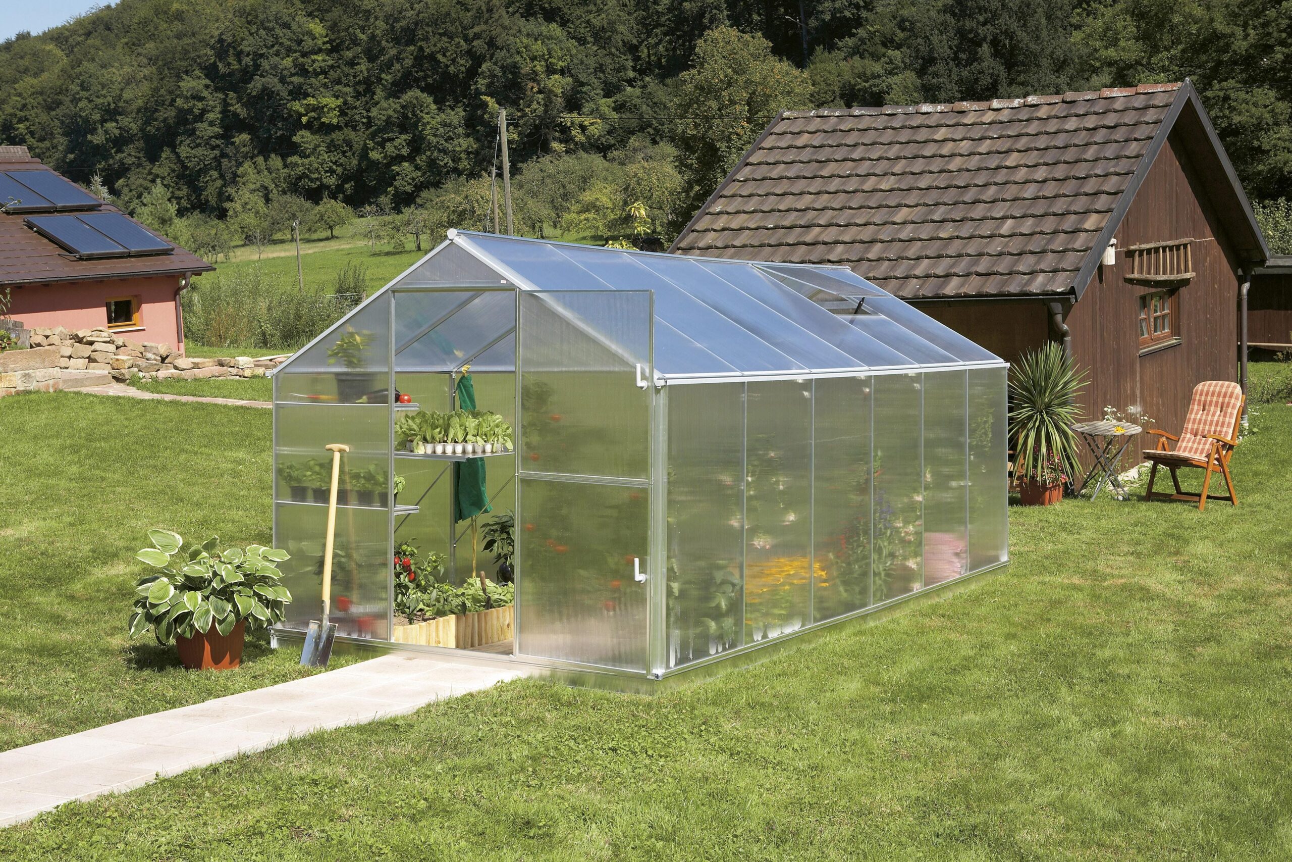 Lieben Sie Ihren Garten? Möchten Sie sich unabhängiger machen vom Lauf der Jahreszeiten und von so mancher Wetterkapriole? Dann entscheiden Sie für ein Alu Gewächshaus. Mit einem Gewächshaus können sie die Gartensaison um viele Wochen verlängern. Und das Beste: Ein Alu Gewächshaus selber zu bauen, ist mit unseren Systemen ganz einfach! Ein Alu Gewächshaus selber bauen: So einfach geht’s Ein Alu Gewächshaus ist ein Gewinn für jeden Garten. Sicher geschützt und unter guten Temperatur- und Lichtbedingungen wachsen Ihre Pflanzen hier schneller und kräftiger heran. Schon eine Fläche von wenigen Quadratmetern reicht aus, um sich diesen Wunsch zu erfüllen. Und unsere Gewächshaus-Systeme sorgen dafür, dass der Aufbau schnell und einfach gelingt. Aufbau fast ohne Werkzeug Mit unseren bewährten Aluminiumkonstruktionen können Sie fast ohne Werkzeug ein Gewächshaus selber bauen: Sie benötigen lediglich zwei Schraubenschlüssel, um die Aluminiumprofile mit den sechs Millimeter starken Stegplatten aus speziellem, transparentem Kunststoff zu verbinden. Das Aluminium ist so geformt, dass die Stegplatten einfach und schnell eingeschoben werden können. Zusätzliche Glashalte-Klammern sind dabei nicht erforderlich. Die ausgeklügelte Verbindungstechnik sorgt nicht nur für einen schnellen Auf- und Abbau, sondern auch für hohe Robustheit, selbst bei Sturm, Wind und Wetter! Die 6 mm starken Spezial-Hohlkammerscheiben sorgen genau für das Klima, das Ihre Pflanzen benötigen. Die Tür ist praktischerweise zweigeteilt und zusätzlich verfügen alle Gewächshäuser je nach Größe über ein oder zwei ausstellbare Dachfenster für die nötige Frischluft an warmen, sonnigen Tagen.