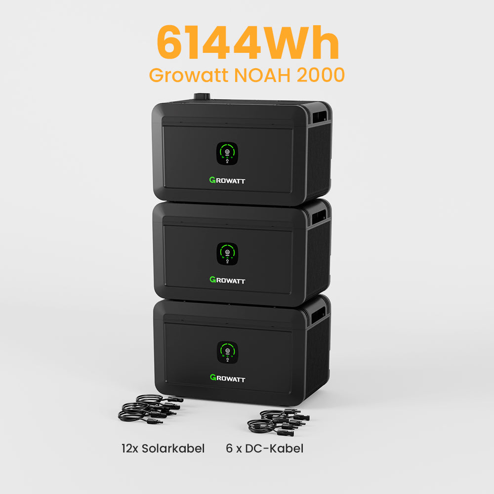 Wichtig: In diesem Angebot wird davon ausgegangen, dass Sie gemäß § 12 Abs. 3 UStG berechtigt sind, das angebotene Produkt zu einem reduzierten MwSt.-Satz von 0 % zu erwerben. Bitte beachten Sie, dass dieser reduzierte Mehrwertsteuersatz nur für Endkunden (C-Endkunden) gilt. Für Geschäftskunden (B-Endkunden) behalten wir uns das Recht vor, Ihnen im Nachhinein eine Rechnung mit dem regulären MwSt.-Satz von 19 % per E-Mail zuzustellen.. Sofort lieferbar – In 7-14 Tagen bei Ihnen Zuhause. Growatt NOAH 2000 Solarspeicher:. 2048Wh (Bis zu 8192Wh), 1800W PV-Eingangsleistung. Fernüberwachung und -steuerung über App. Hochwertige LiFePO4-Batterie, 6000 Ladezyklen. Schnelle und einfache Installation. Robuste Bauweise mit IP66-Schutzklasse
