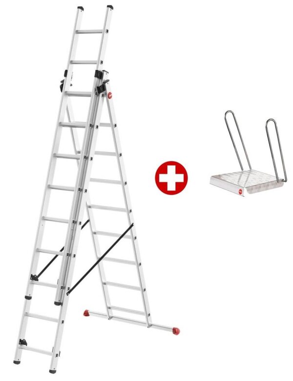 Hailo Sprossenleiter, 3-in-1-Alu-Kombileiter + gratis Einhängetritt
