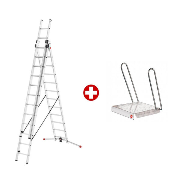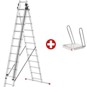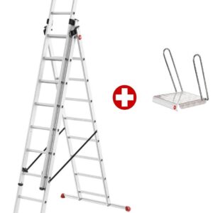 Hailo ProfiLOT Aluminium-Teleskopleiter mit gratis Einhängetritt, Kombi-Leiter mit 3 x 12 Sprossen