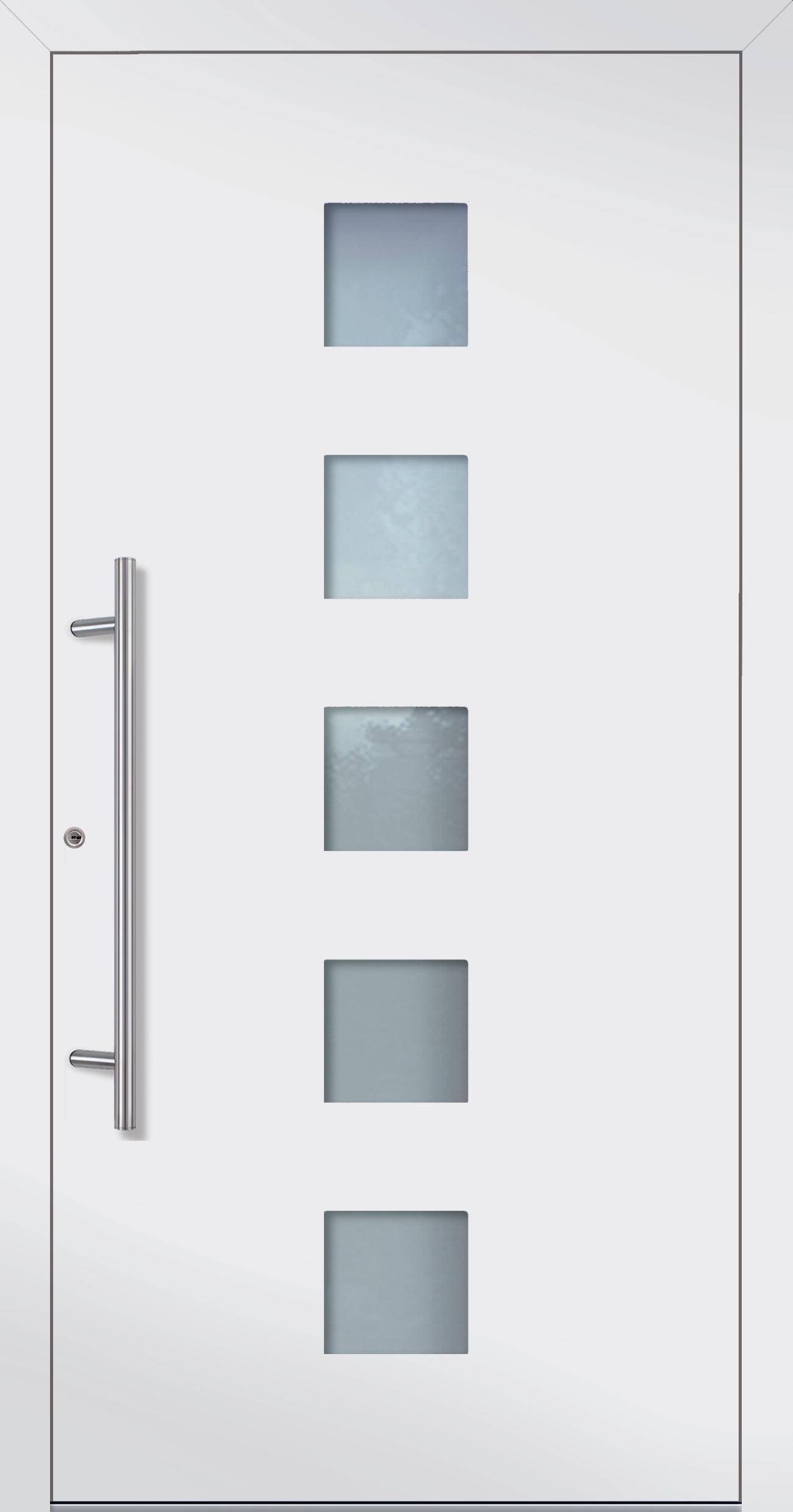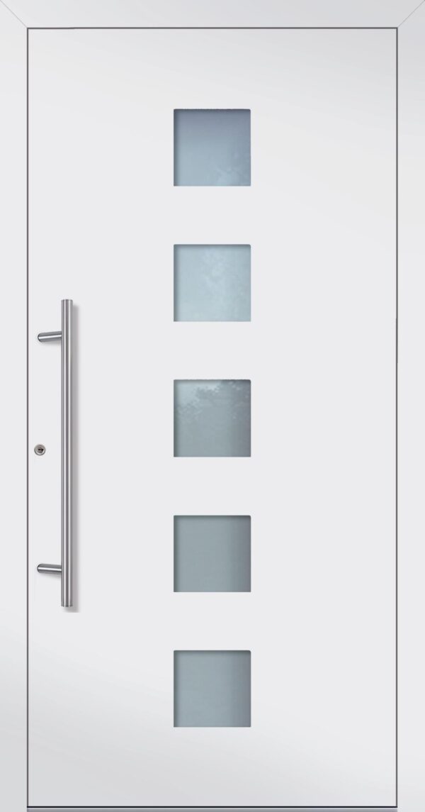 ‚Aluminium Eingangstür nach Maß „SISSI“ smarte Funktion: Fingerscanner, Digitaler Türspion oder Codetaster Profil: GT 190 Arcade Wärmedämmung: 0,80 W/m²K Widerstandsklasse RC2 Farben: Weiß, Anthrazitgrau, Weinrot, Graualuminium, Anthrazitgrau/Eisenglimmer, Dunkelbraun oder Weißaluminium beidseitig flügelüberdeckend Sicherheitsverglasung (P4A-Scheibe)‘