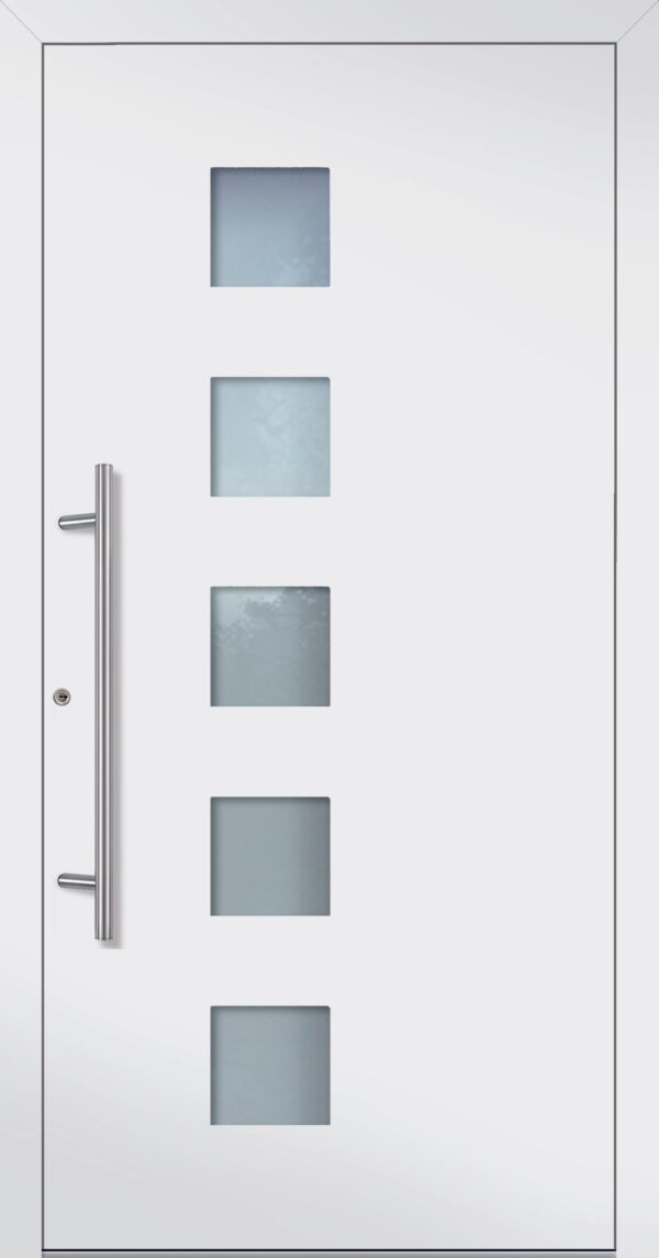 ‚Aluminium Haustür nach Maß „STELLA“ smarte Funktion: Fingerscanner, Digitaler Türspion oder Codetaster Profil: GT 190 Arcade Wärmedämmung: 0,80 W/m²K Widerstandsklasse RC2 Farben: Weiß, Anthrazitgrau, Weinrot, Graualuminium, Anthrazitgrau/Eisenglimmer, Dunkelbraun oder Weißaluminium beidseitig flügelüberdeckend Sicherheitsverglasung (P4A-Scheibe)‘