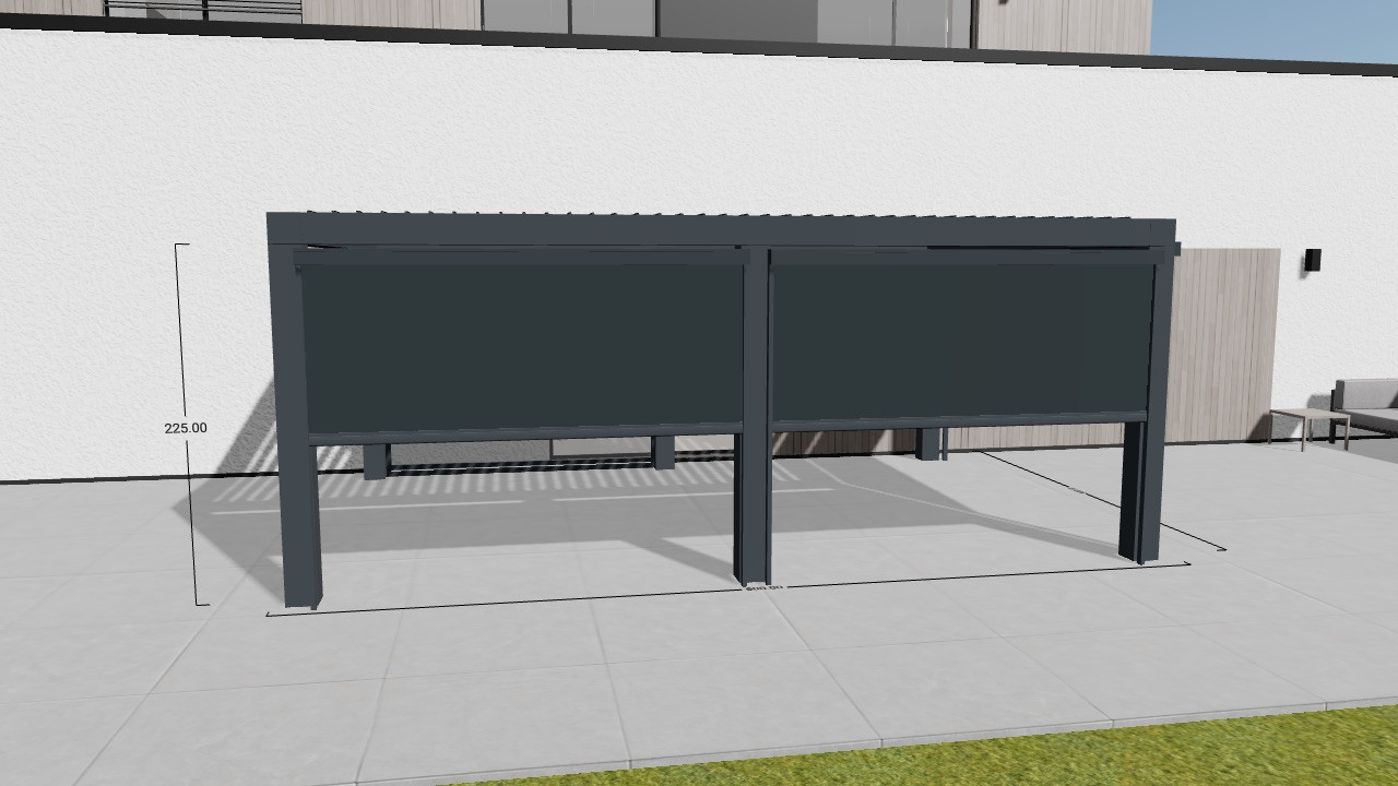 Merkmale Schritt Merkmal Wert Preis GRUNDDATEN Modellauswahl Pergola Easy €1,188.00 Breite 6.00 m €0.00 Tiefe 4.00 m €0.00 Höhe Unterkante Dachrinne 225 cm €0.00 SEITENELEMENTE Seitenelement Seitenelement 1 €0.00 Seitenwände Typ Keine Angabe €0.00 Seitenelement Seitenelement 2 €1,620.00 Seitenwände Typ Screen €0.00 Zugluftstopper Mit Bürstentyp €300.00 Griffe Mit Griffen €147.00 Stoff Anthrazit €0.00 Seitenelement Seitenelement 3 €1,402.00 Seitenwände Typ Screen €0.00 Zugluftstopper Keine Angabe €0.00 Griffe Keine Griffe €0.00 Stoff Anthrazit €0.00 Seitenelement Seitenelement 4 €198.00 Seitenwände Typ Glasschiebeelement €0.00 Zugluftstopper Keine Angabe €0.00 Griffe Keine Griffe €0.00 Screen Nicht ausgewählt €0.00 Seitenelement Seitenelement 2 €1,620.00 Seitenwände Typ Screen €0.00 Zugluftstopper Mit Bürstentyp €300.00 Griffe Mit Griffen €147.00 Stoff Anthrazit €0.00 Seitenelement…