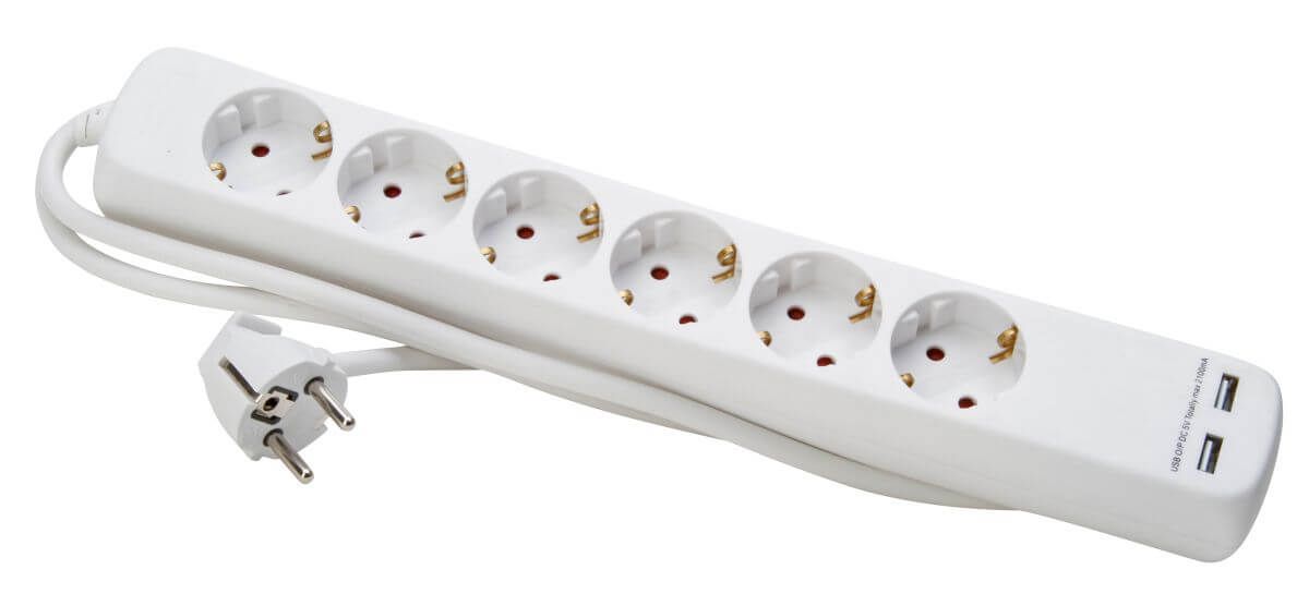 * Steckdosenleiste mit 6 Steckplätzen + 2 USB-Ports