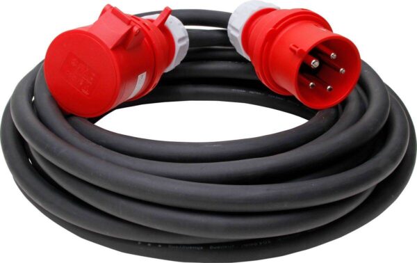 Länge:10m Nennspannung:400 V Nennstrom:32 A IP-Schutz:IP44 Lage des Schutzkontaktes:6h Pohlzahl:5 Mantelmaterial:Gummi Farbe:rot/schwarz Gummischlauchleitung:H07RN-F 5G4  Lieferumfang