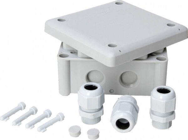 Kopp Feuchtraum Abzweigdose Aufputz Verteilerkasten 3 Verschraubungen M20 grau