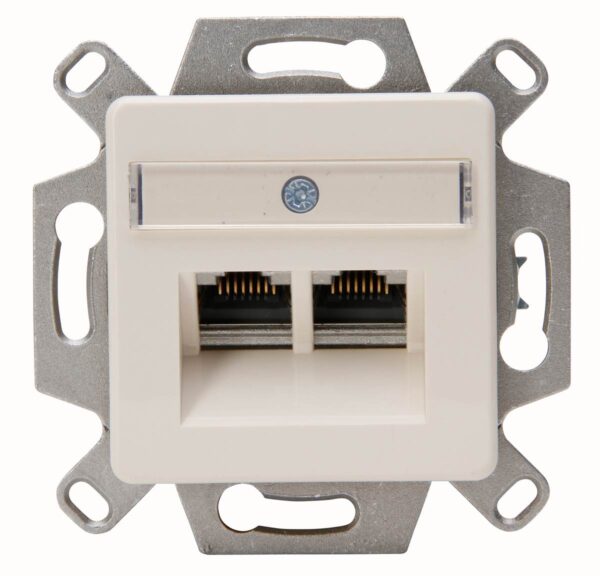 Montageart: Unterputz Befestigungsart: Schrauben Anzahl Anschlüsse: 2 Kategorie: 6A (IEC) Farbe: Weiß Anschlussart: LSA Auslassrichtung: Schräg Mit Staubschutz: Nein Schutzart (IP): IP20 Lieferumfang