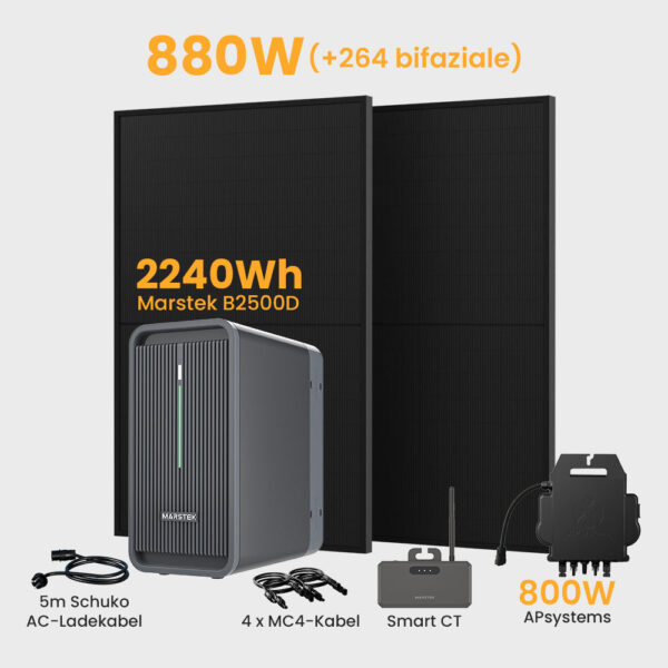 Wichtig: In diesem Angebot wird davon ausgegangen, dass Sie gemäß § 12 Abs. 3 UStG berechtigt sind, das angebotene Produkt zu einem reduzierten MwSt.-Satz von 0 % zu erwerben. Bitte beachten Sie, dass dieser reduzierte Mehrwertsteuersatz nur für Endkunden (C-Endkunden) gilt. Für Geschäftskunden (B-Endkunden) behalten wir uns das Recht vor, Ihnen im Nachhinein eine Rechnung mit dem regulären MwSt.-Satz von 19 % per E-Mail zuzustellen.. Lieferumfang:1 x Marstek B2500-D Batteriespeicher. 4 × MC4-kabel. 1 × Smart CT (optional)