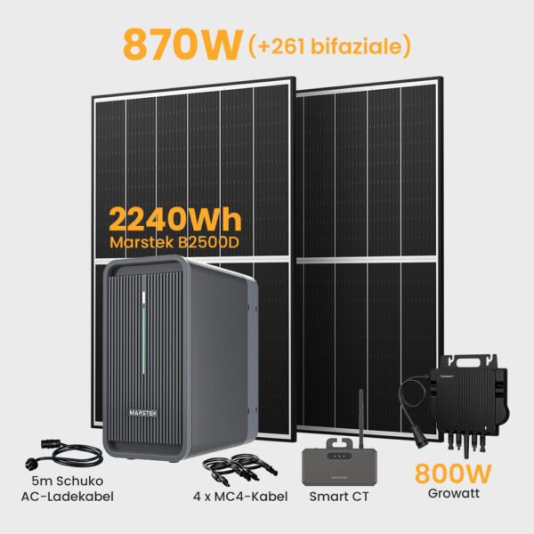 Wichtig: In diesem Angebot wird davon ausgegangen, dass Sie gemäß § 12 Abs. 3 UStG berechtigt sind, das angebotene Produkt zu einem reduzierten MwSt.-Satz von 0 % zu erwerben. Bitte beachten Sie, dass dieser reduzierte Mehrwertsteuersatz nur für Endkunden (C-Endkunden) gilt. Für Geschäftskunden (B-Endkunden) behalten wir uns das Recht vor, Ihnen im Nachhinein eine Rechnung mit dem regulären MwSt.-Satz von 19 % per E-Mail zuzustellen.. Lieferumfang:1 x Marstek B2500-D Batteriespeicher. 4 × MC4-kabel. 1 × Smart CT (optional)