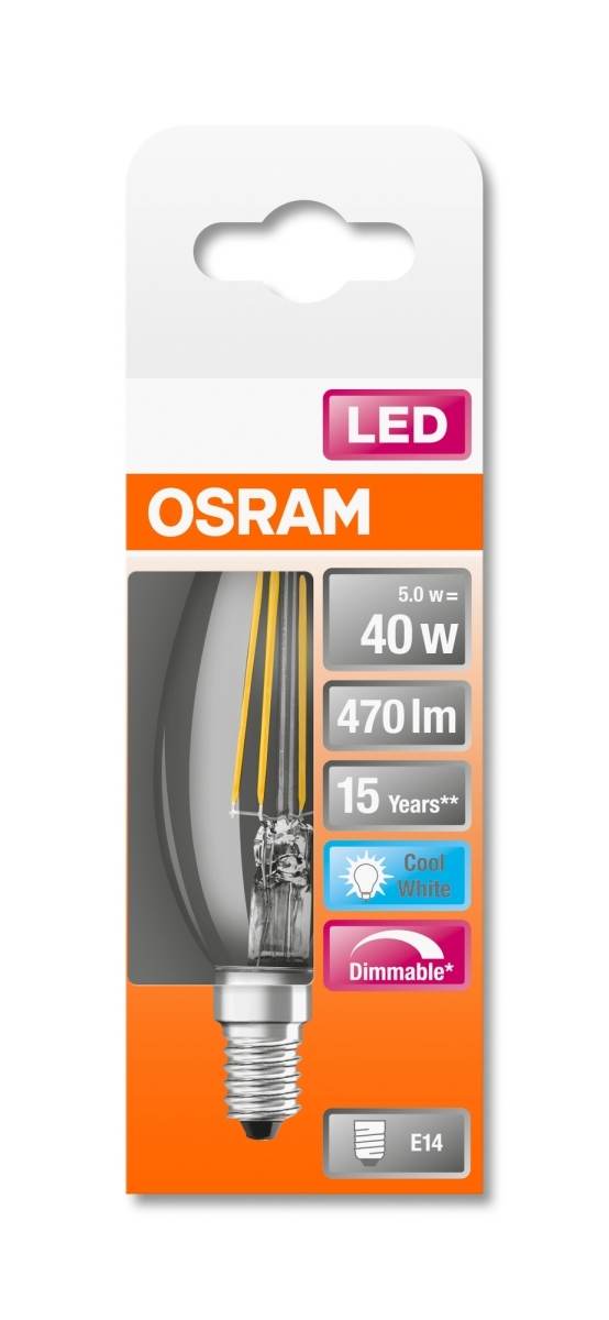 Osram LED Retrofit CLASSIC B DIM, 4,8 W = 40 W, 470 lm, E14, 300 °, 4000 K