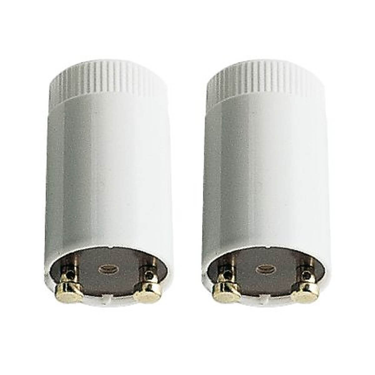 Starter für Leuchtstofflampen und Kompaktleuchtstofflampen, in Verbindung mit konventionellen Vorschaltgeräten. Doppelpack für Lampen von 4 bis 22 Watt.