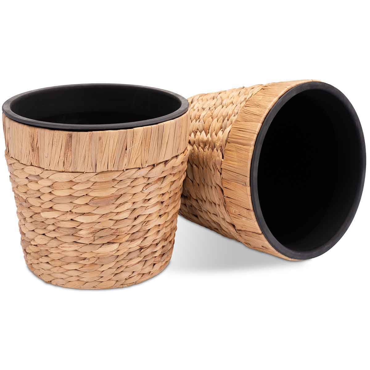 Pflanztopf, geflochten aus Wasserhyazinthe mit Kunststoffeinsatz