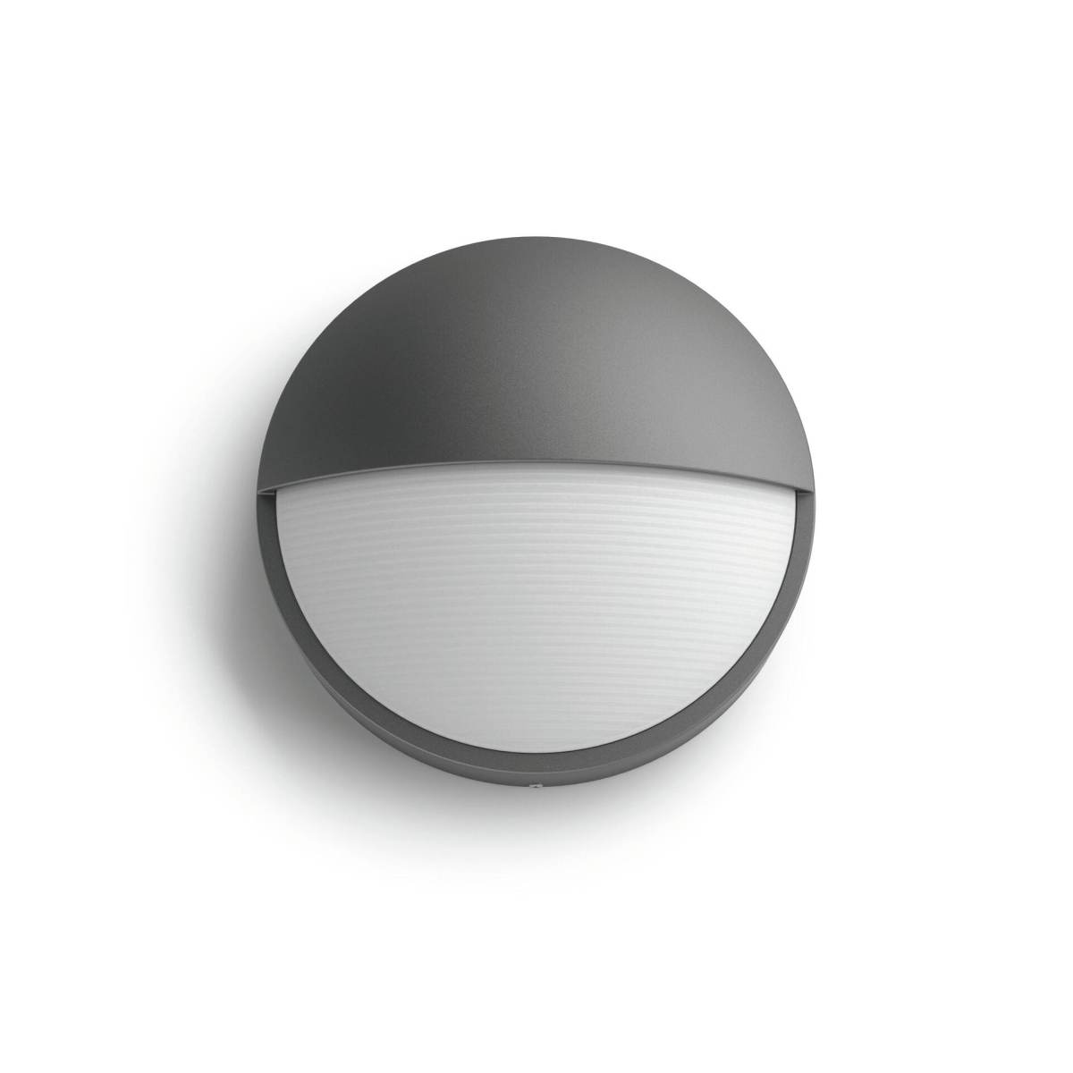 Diese runde, kuppelförmige Philips Capricorn LED-Wandleuchte für den Außenbereich in Anthrazit besteht aus widerstandsfähigem Aluminium-Druckguss. Das elegante Halbmonddesign beleuchtet Außenbereiche mit hellem, aber gestreutem, warmweißem Licht.