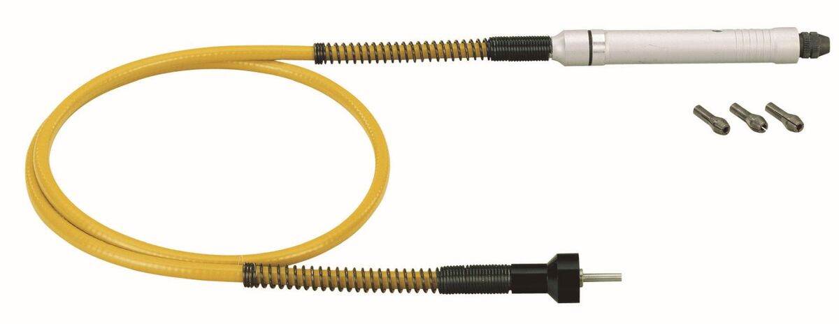 Länge: 100 cm Durchmesser Antriebsseite: 3,2 mm Durchmesser Handstück: 15 mm Länge Alugriffstück: 102 mm Höchstzulässige Drehzahl: 25.000 U/min. Lieferumfang:
