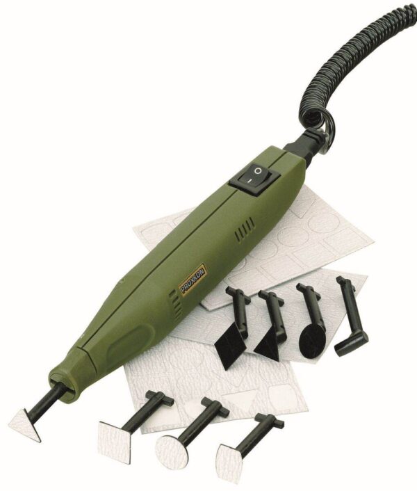 * Langlebiger DC-Spezialmotor Der Penschleifer von der Firma PROXXON ist ein superfeines Schleifgerät mit linear-schleifender Fläche (nicht rotierend). Er eignet sich ideal für das Bearbeiten von Oberflächen in Aussparungen, Schlitzen, Fächern und in kleinen Ecken. Das Gehäuse aus glasfaserverstärktem POLYAMID beherbergt einen langlebigen DC-Spezialmotor.