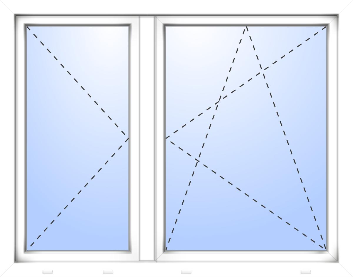 ‚PVC Fenster zweiflügelig „LARS“ ohne Pfosten 3-fach verglast asymmetrisch‘