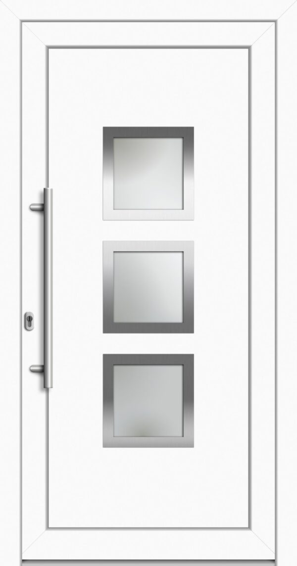 ‚Moderne Kunststoff Haustür Anthrazit RAL 7016 mit 3 Glaseinsätzen in Satinatoglas und Edelstahlapplikation mit 5-fach Rollzapfenverriegelung oder 5-fach Pilzkopfverriegelung als Maßanfertigung‘