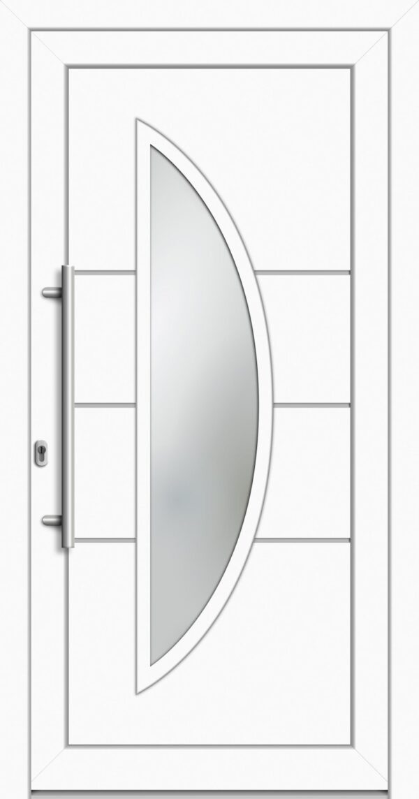 ‚Kunststoff Haustür mit gebogenem Lichtausschnitt und guter Wärmedämmung dank 2-fach Satinatoglas mit Isolierglaseinsatz, erhöhte Sicherheit dank 5-fach-Verriegelung, Bestellung auf Maß‘
