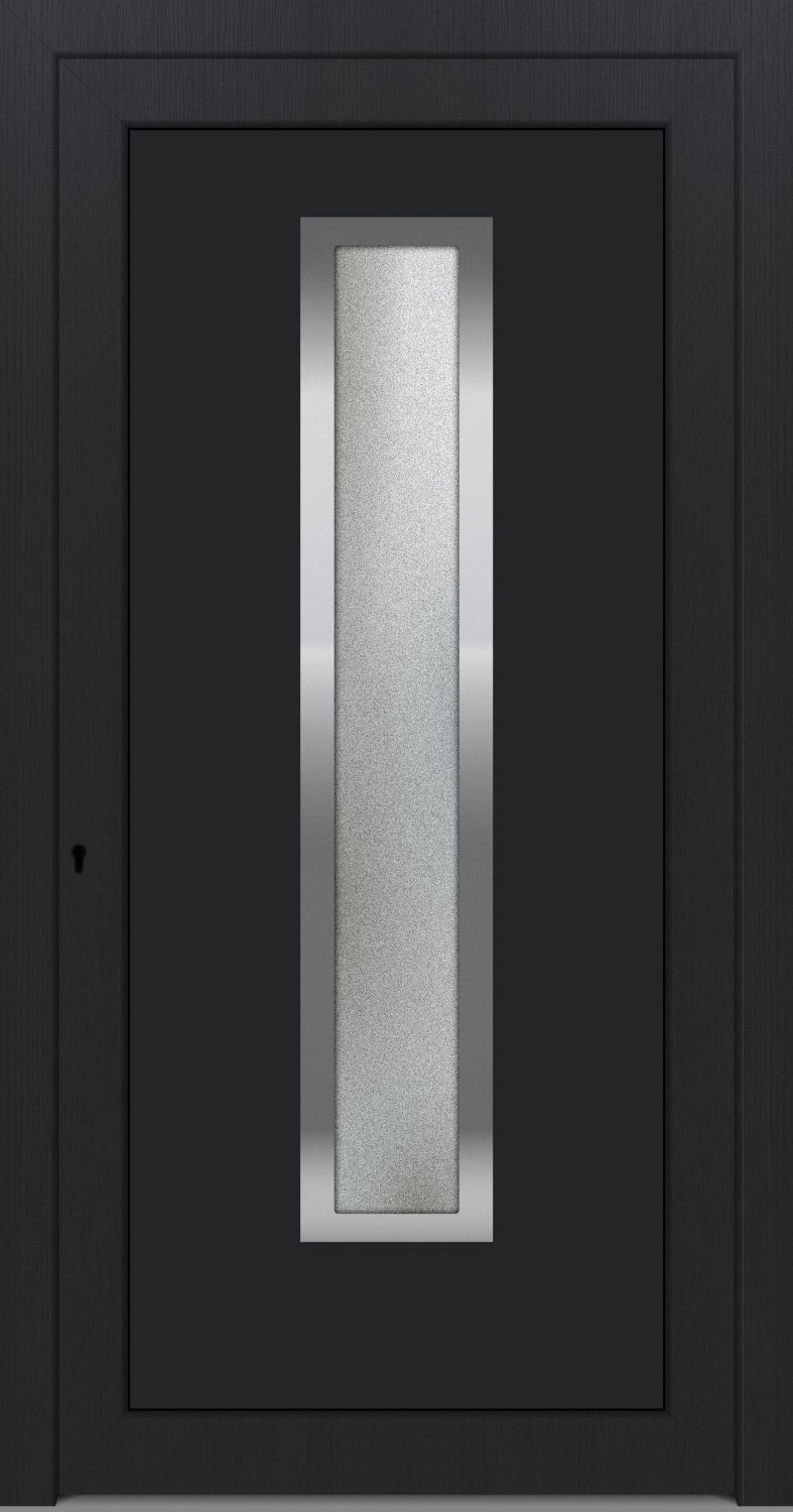 ‚Schlichtes Design mit geradliniger Verglasung, abgesetzten Edelstahl Applikationen und einem strahlenden Farbton lassen Ihren Hauseingang zum Hingucker für Ihre Gäste werden. Dieses Modell wird im klassichen und zeitlosen Anthrazitgrau gefertigt. Bei der Wahl der Glasart können Sie entscheiden wie viel Einblick Sie in Ihr Haus gewähren möchten. Wählen Sie aus einem Mastercarré-Glas, Klarglas, Ornamentglas 504 oder Satinato (Milchglas) die passende Variante aus und erfreuen sich an Ihrem neuen Schmuckstück. Eine Bestellung auf Maß erleichtert Ihnen zu dem den Einbau der Tür. Bestellen Sie sich die Haustür VICTORIA in einer Breite von 80 cm bis 115 cm und mit einer Höhe von 183 cm bis 225 cm. Mit einer 5-fach Rollzapfenverriegelung oder 3-fach Schwenkhakenverriegelung und dem passenden Zubehör runden Sie das Erscheinungsbild Ihrer Tür optimal ab. Egal welche Variante Sie sich konfigurieren, Sie erhalten in jedem Fall eine hochwertige Haustür mit hervorragenden Eigenschaften!‘