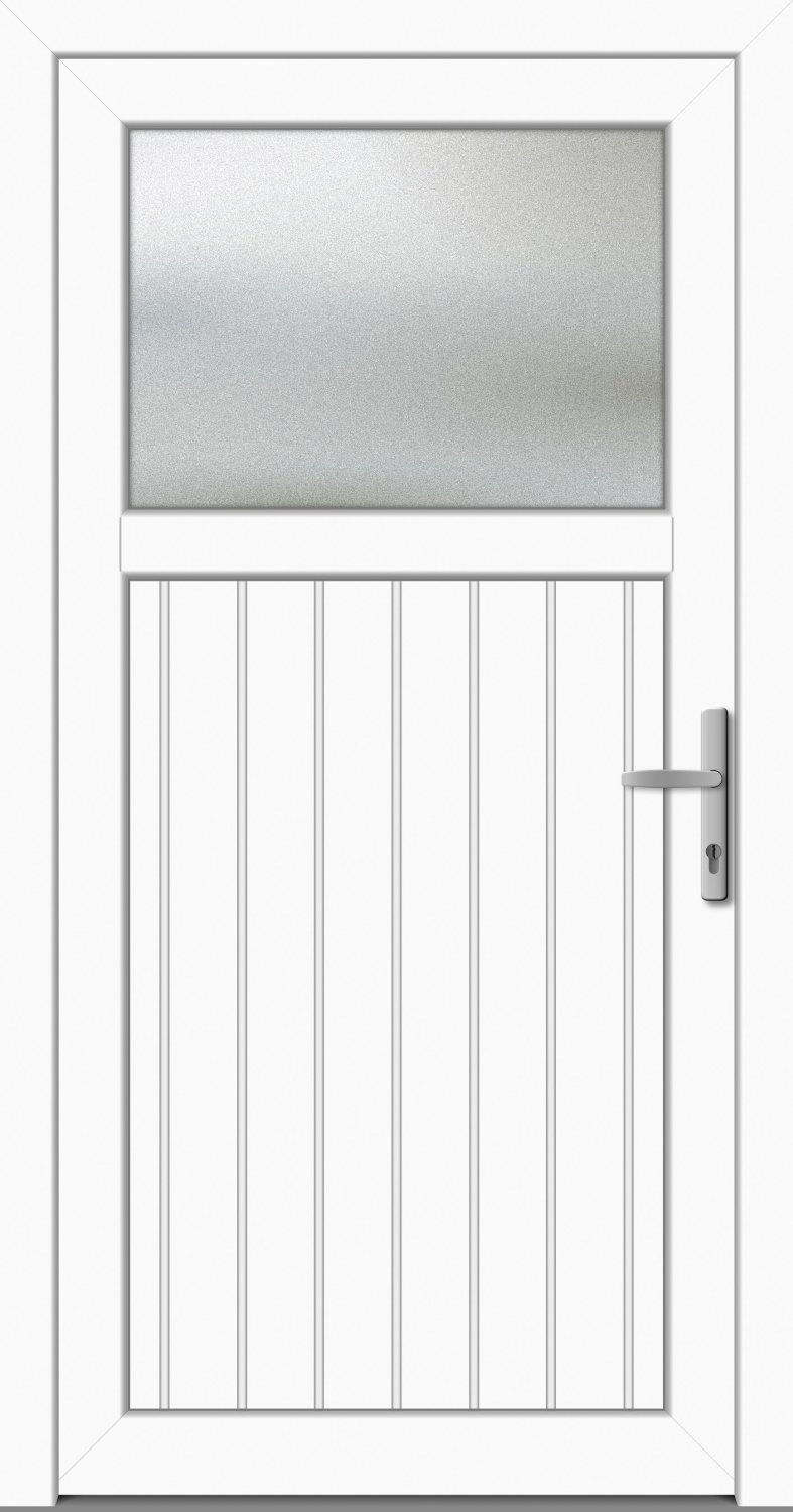 ‚Unsere Kunststoff Nebeneingangstür „SANDRA“ 74 mm ist eine maßgefertigte Kunststofftür, die Sie flexibel in Hobbyraum, Keller oder Geräteraum einsetzen können. Dank der Glasfläche wird Ihr Seiteneingang mit zusätzlichem Tageslicht versorgt. Die frische Farbgestaltung in Weiß fügt sich optimal in die Fassade ein. Abgesichert durch eine 5-fach Rollzapfenverriegelung oder 3-fach Schwenkhakenverriegelung können Sie diese Tür unbesorgt in abgelegenen Seiteneingängen verwenden. Das Modell PVC Nebeneingangstür „SANDRA“ 74 mm bietet eine Fertigung auf Maß. Somit eignet sich diese Seiteneingangstür auch für Renovierungen mit vorgegebenen Maßen. Wählen Sie eine Breite zwischen 80 cm – 115 cm und eine Höhe zwischen 183 cm – 225 cm und ersparen sich viel Arbeit beim Einbau der Tür. Danke der Öffnungsrichtung nach außen oder innen, können Sie den Vorteil der nach außen öffnenden Tür für Ihre Bausituation nutzen. Bestellen Sie Ihre maßgefertigte Tür einfach und bequem online!‘