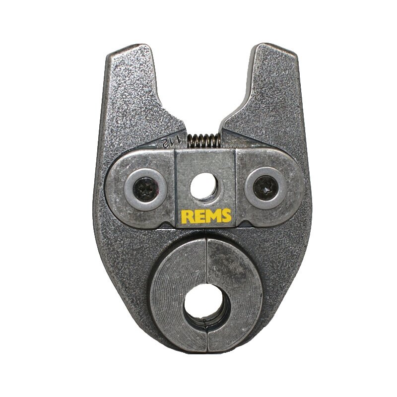 REMS – hochbelastbare Presszangen aus geschmiedetem Spezialstahl Die richtige Werkstoffwahl, die exakte Bearbeitung und die spezielle Wärmebehandlung sind maßgebend für die lange und sichere Funktion der REMS Presszangen. Beim Pressvorgang können an der Presszange erforderliche Presskräfte bis zu 100 kN (10 t) entstehen, welche durch die Presszange sicher aufgenommen werden müssen. REMS Presszangen sind deshalb aus geschmiedetem und besonders gehärtetem Spezialstahl mit hoher Festigkeit gefertigt. Die jeweilige systemspezifische Presskontur wird – zusammen mit der erforderlichen Außenbearbeitung der Pressbacken und der Kennzeichnung der Presskontur und Rohrgröße – in einem Arbeitsgang auf CNC-Bearbeitungszentren hochpräzis eingearbeitet und maschinell exakt ausgerundet. Durch die spezielle Wärmebehandlung der Presszangen in der eigenen Härterei wird eine ideale Kombination zwischen Festigkeit und Zähigkeit erreicht. Dieser Fertigungsprozess garantiert, dass die eingearbeitete Presskontur ordnungsgemäß und mit langer Lebensdauer auf die Pressverbindung übertragen wird. Aufgrund dieses hohen Qualitätsstandards werden weltweit millionenfach einwandfrei systemkonforme, sichere Pressverbindungen mit REMS Presszangen hergestellt. Bitte beachten Sie bei ihrer Bestellung, dass eine Rücknahme der Pressmaschine oder Backen nicht mehr möglich ist, sobald die Plombe entfernt wurde.