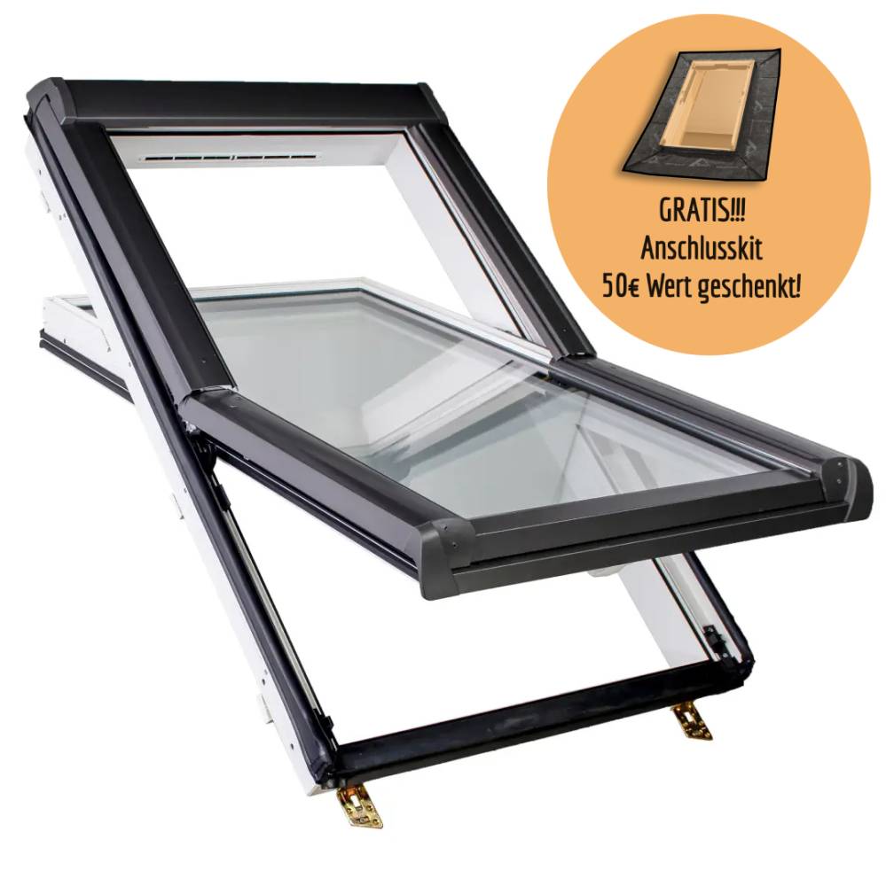 Roto Dachfenster Dachdecker Favorit“ aus Kunststoff und Eindeckrahmen – Sonderaktion! Gratis Anschlusskit ASA zu jedem Fenster geschenkt!“